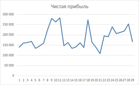 Доход от 135000 в месяц, если закупить склад, то доход будет выше в разы, наш самый максимальный чистый доход без склада 340000 в месяц.