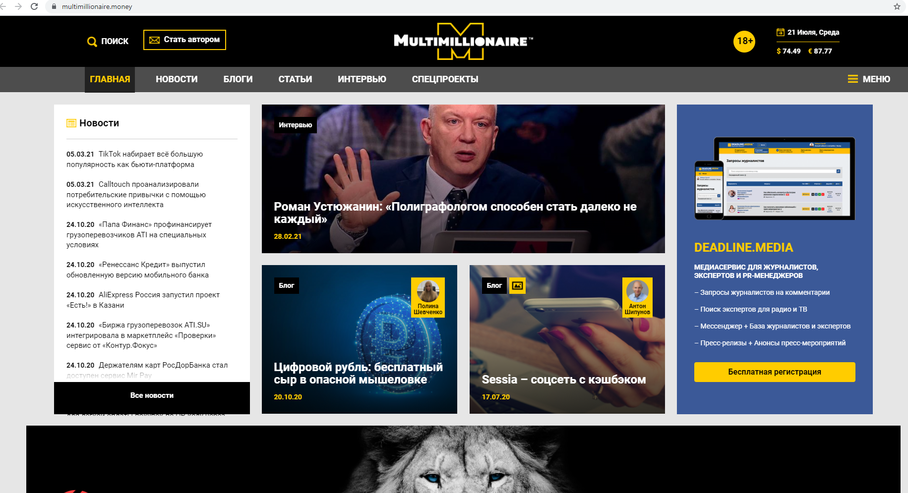 На портале «Мультимиллионер» представлен максимально разнообразный контент: новости, статьи, интервью, колонки, спецпроекты. Сильная команда IT-специалистов, редакторов и журналистов постоянно работает над улучшением редакционных материалов и увеличением числа сервисов портала, создавая качественный продукт.