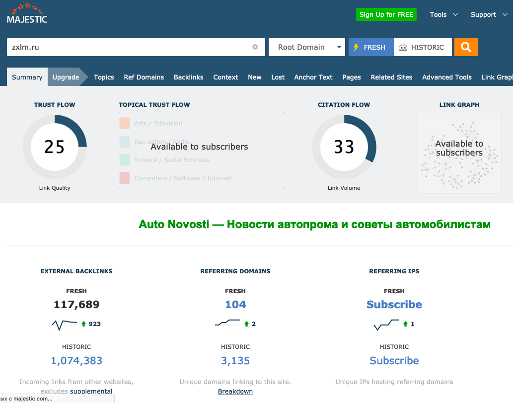 Сайт в высокодоходной автотематике, высокий TF/CF 25/33, ИКС 40.