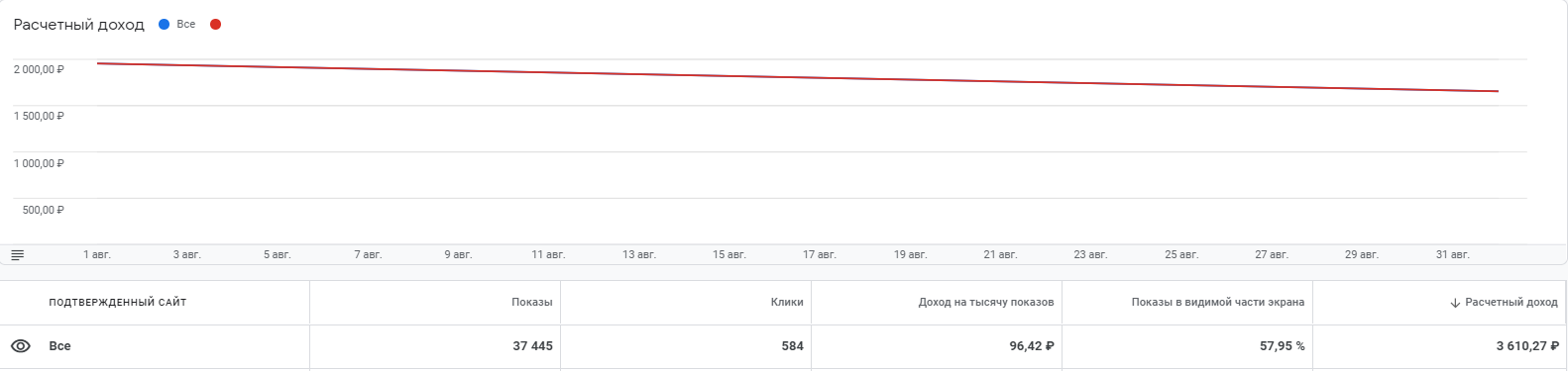 Доход только с адсенс. РСЯ прошел модерацию, но блоки не ставили