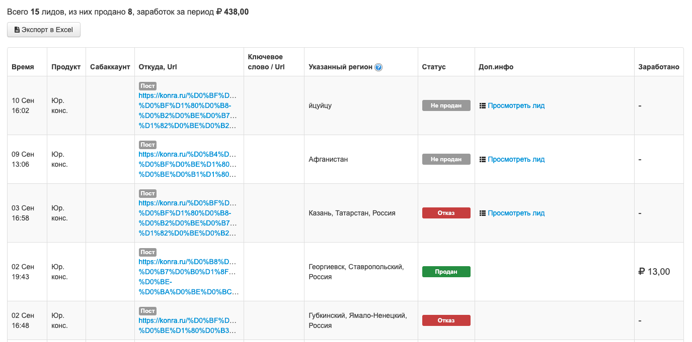 Раньше подключал лидпуш (юридические консультации), но снял, подумал из-за онлайн-консультанта просадка по позициям.