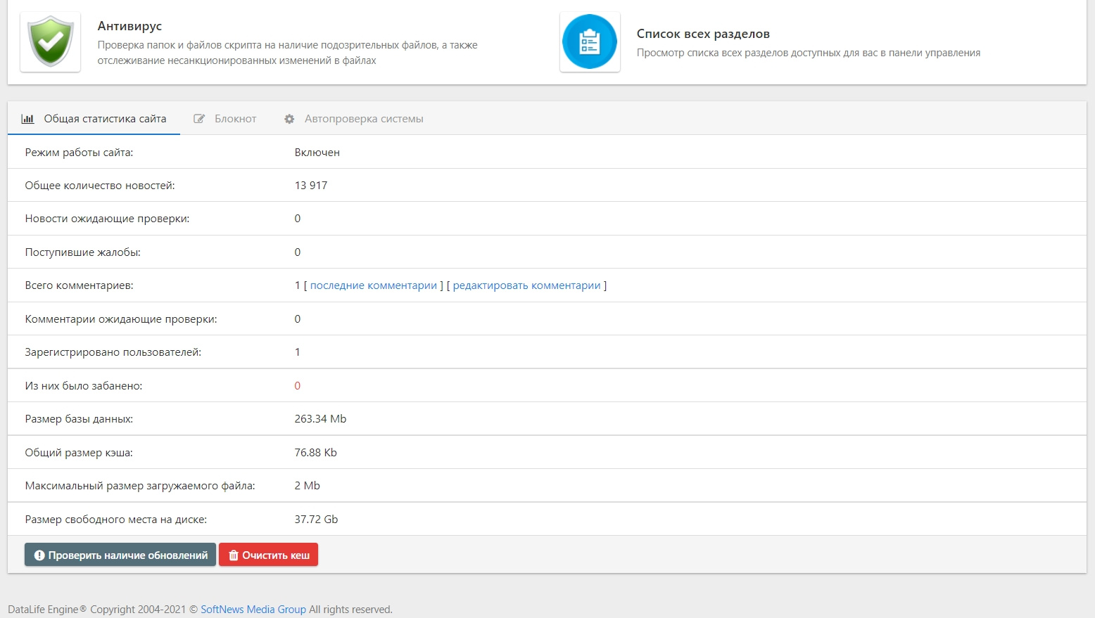 Дополнительная информация:Новости на сайт добавляются, администратором и пользователями сайта. Новости пользователей проходят ручную модерацию, но и есть возможность для включения автоматического режима без модерации.