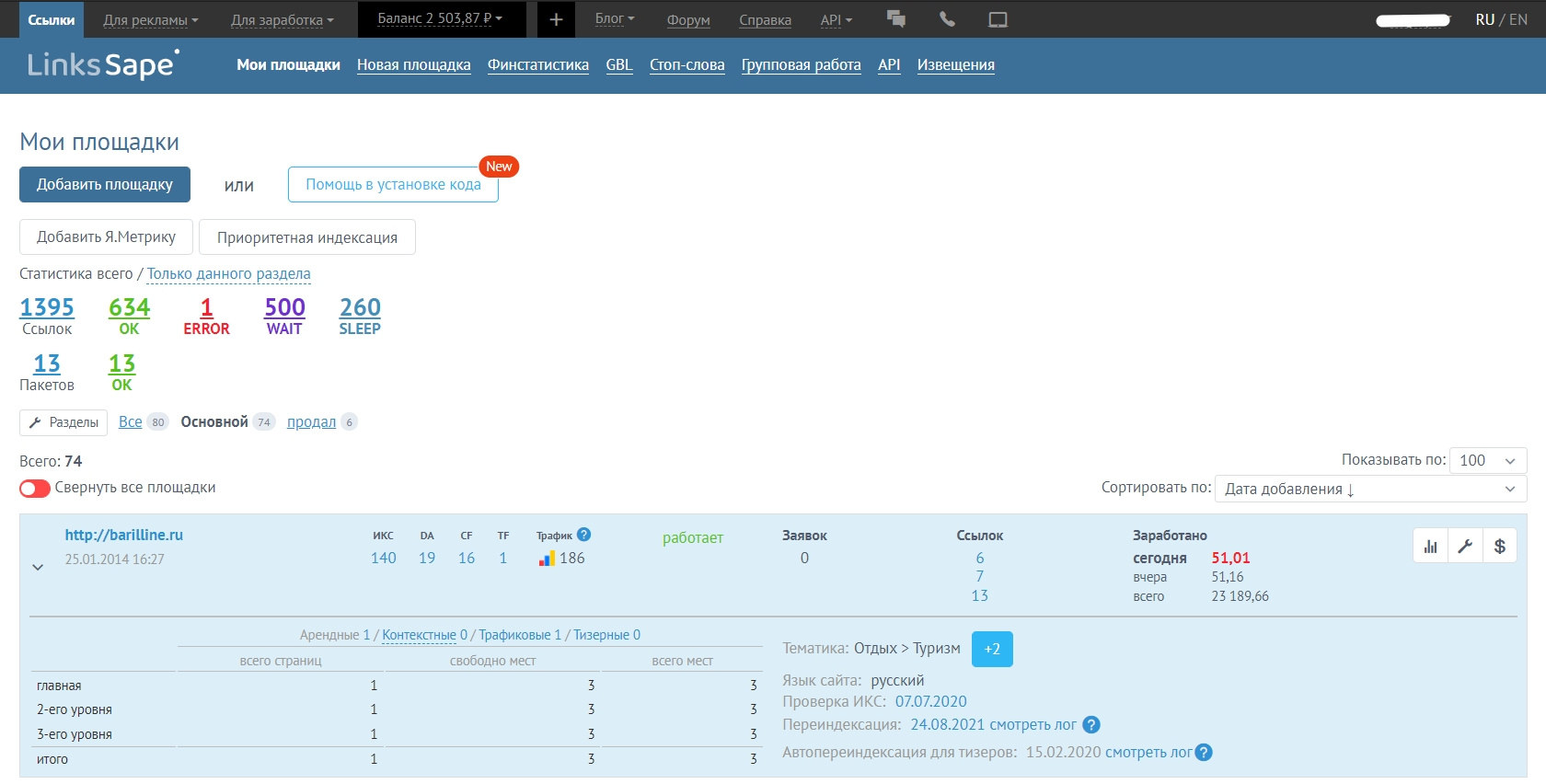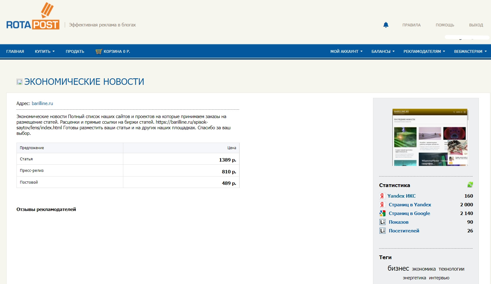 Сайт работает на биржах которые приносят стабильный доход, так же есть прямые заказчики на публикацию статей, постов, ссылок, баннеров на сайте. Данные люди связываются на прямую с администрацией сайта..