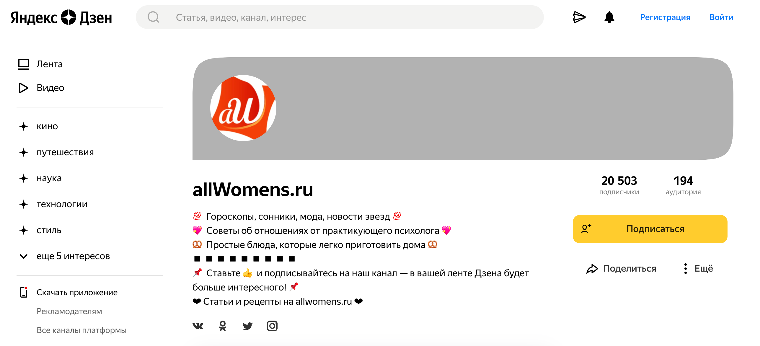 - добавлен по RSS в Яндекс.Дзен (кликабельно). Дзеном давно не занимался и ничего не постил, на данный момент весь трафик на сайте с SEO. Если делать регулярные публикации в дзен, может дать хороший рост.