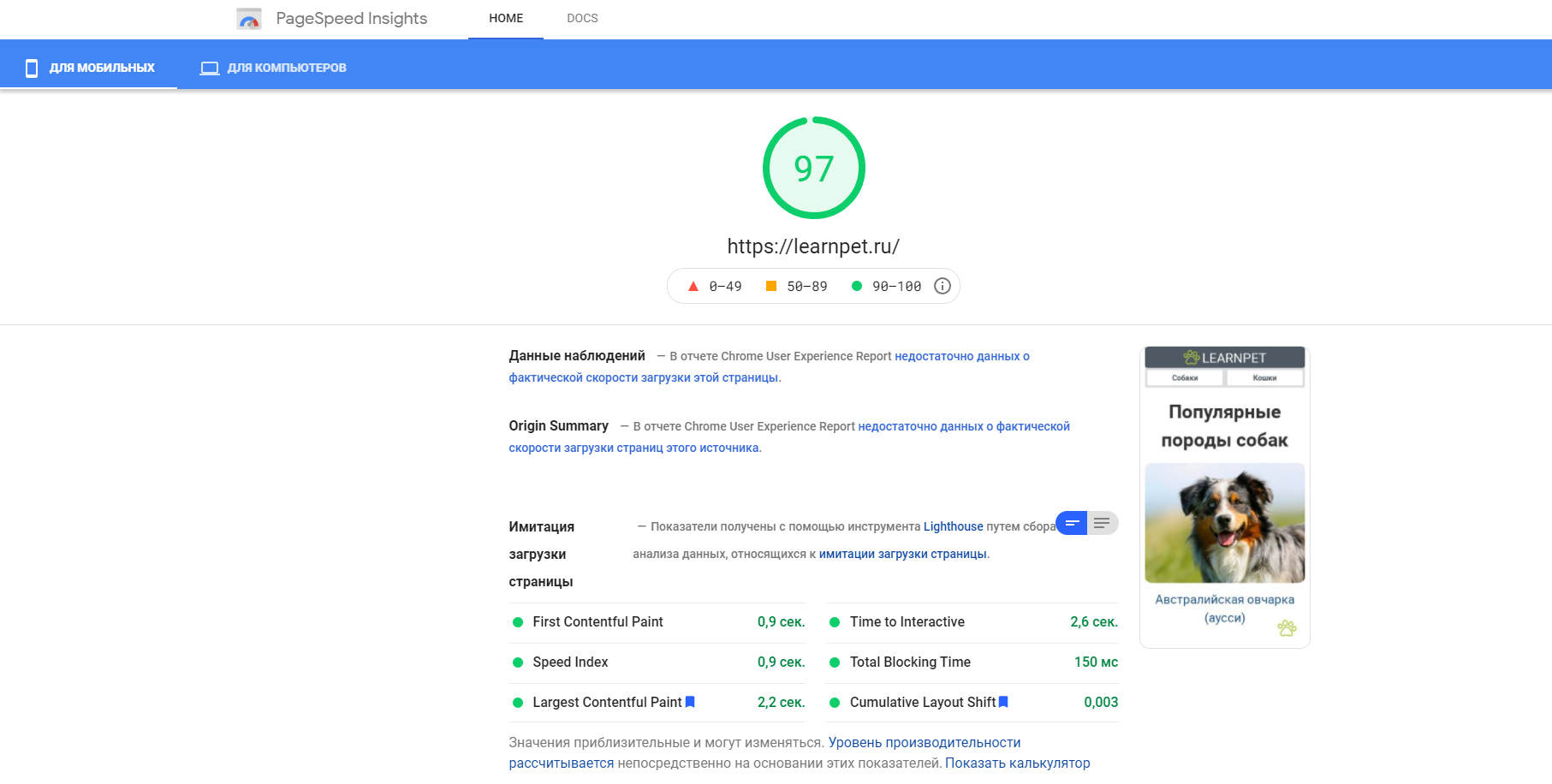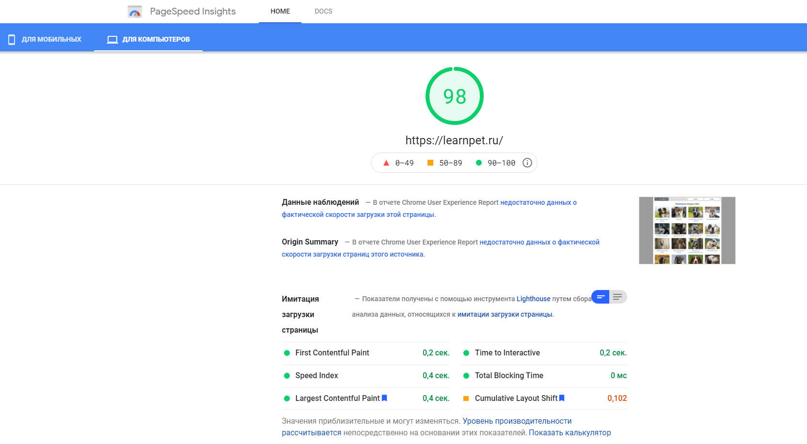 По гугл спид сайт в зеленой зоне, что для компьютера что для смартфона.