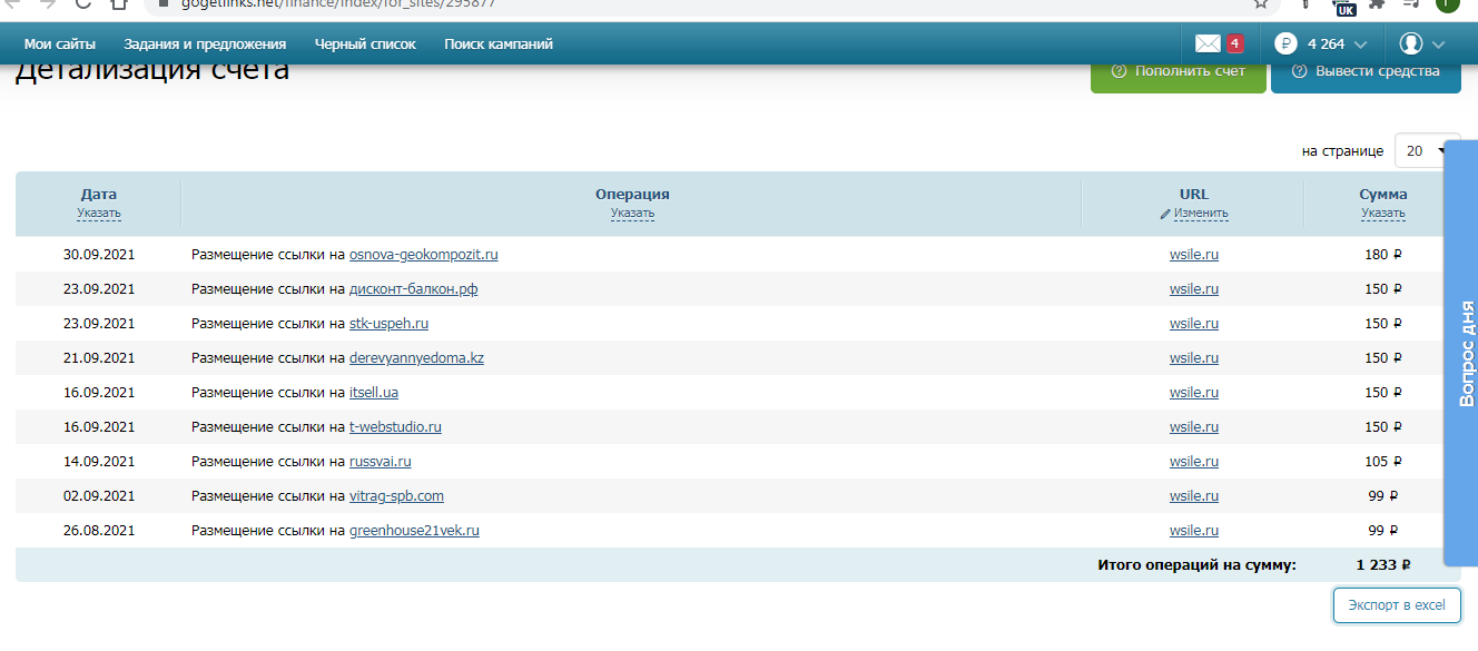 доход за месяц 1233руб.сайт был открыт в ГГЛ не полный месяц,можно было и больше заработать так как цена заявки стоит меньше средней