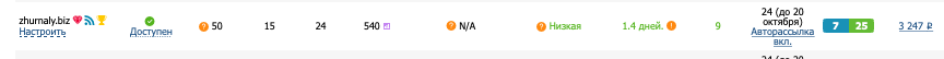 Свежий, не заспамлен ссылками, работает в ссылочных биржах меньше 2х мес и за сентябрь заработал 7523руб (6756руб в GGL и 767руб в Collaborator, см скрины тк телдери подтягивает среднее значение за 2 месяца).