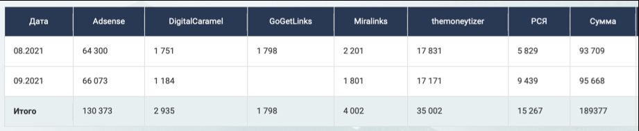 4. Для финансовой ниши Монетизация у меня слабая: основной доход с гугла, причем он размещен просто авторасстановкой.