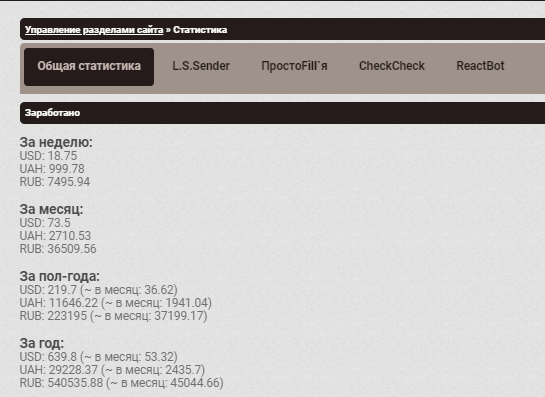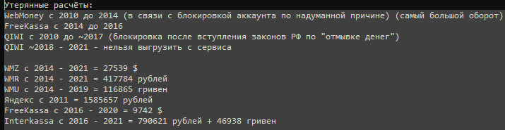 Есть частичные отчёты по финансам. К сожалению не все так как в своё время блокировали WM и Qiwi.