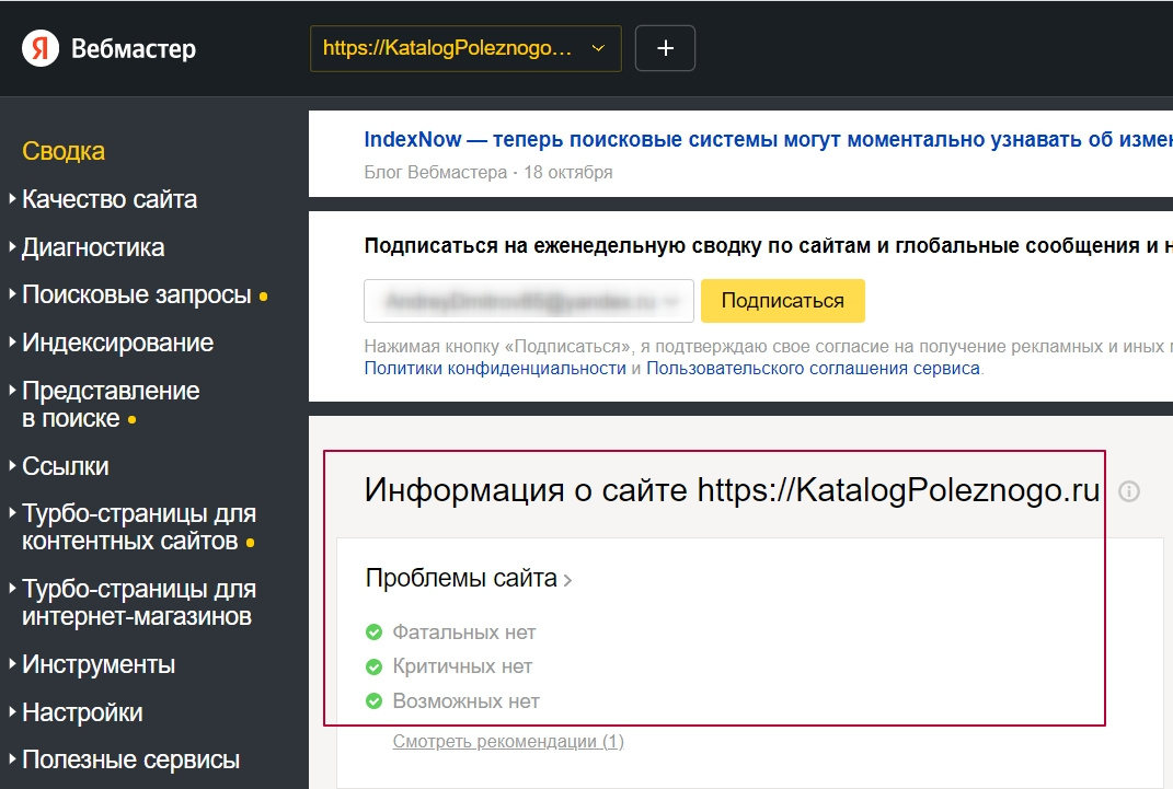 В вебмастере совершенно ни каких ошибок, даже мелкий. (см. скрины).