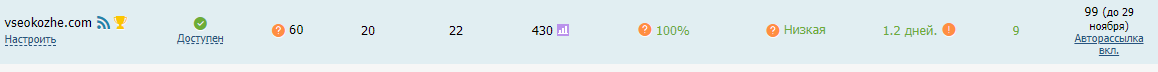 В ГГЛ траст 9, цены на заявки средние, ссылочность низкая 0 %, индексация 100 %.