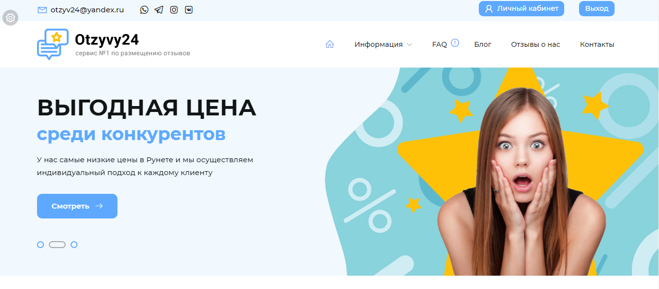 Продаётся полностью автоматизированный сайт по заказу положительных отзывов в Интернете. Сайт полностью настроен и готов к работе. Что выгодно отличает данный сайт от конкурентов: