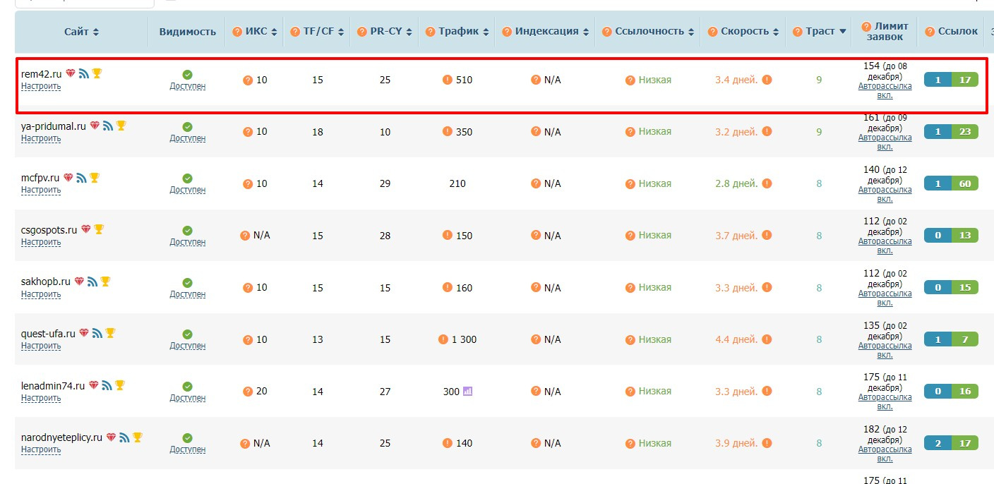 Есть еще много сайтов в ГГЛ с трастом 8 - https://www.telderi.ru/ru/search?pid=7537f9#user_id=74018