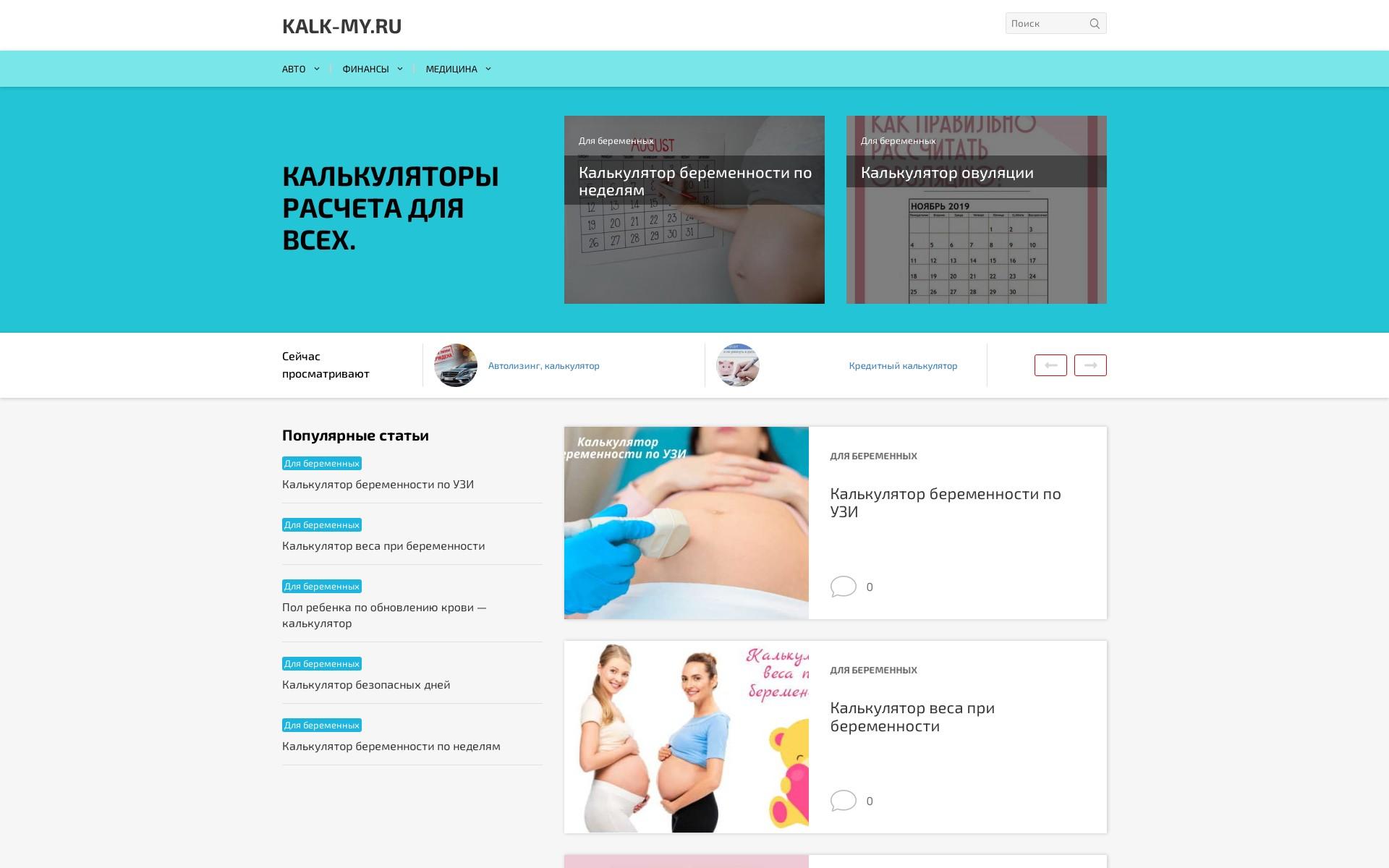Сайт предназначался для размещения на нем различных калькуляторов, от беременности и красоты, до строительства и конвектора валют. Размещено несколько тематических калькуляторов. Можно продолжить выбранную тему сайта или как вариант, удалить статьи с сайта (их не много) и начать другую тему.