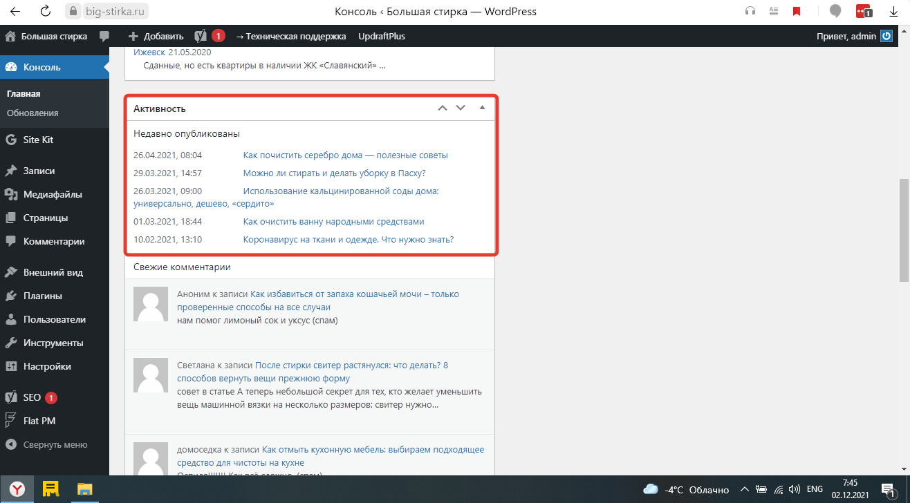 Дайте пожалуйста скрин с админки о количестве статей на сайте для iamashkina1980@yandex.ru