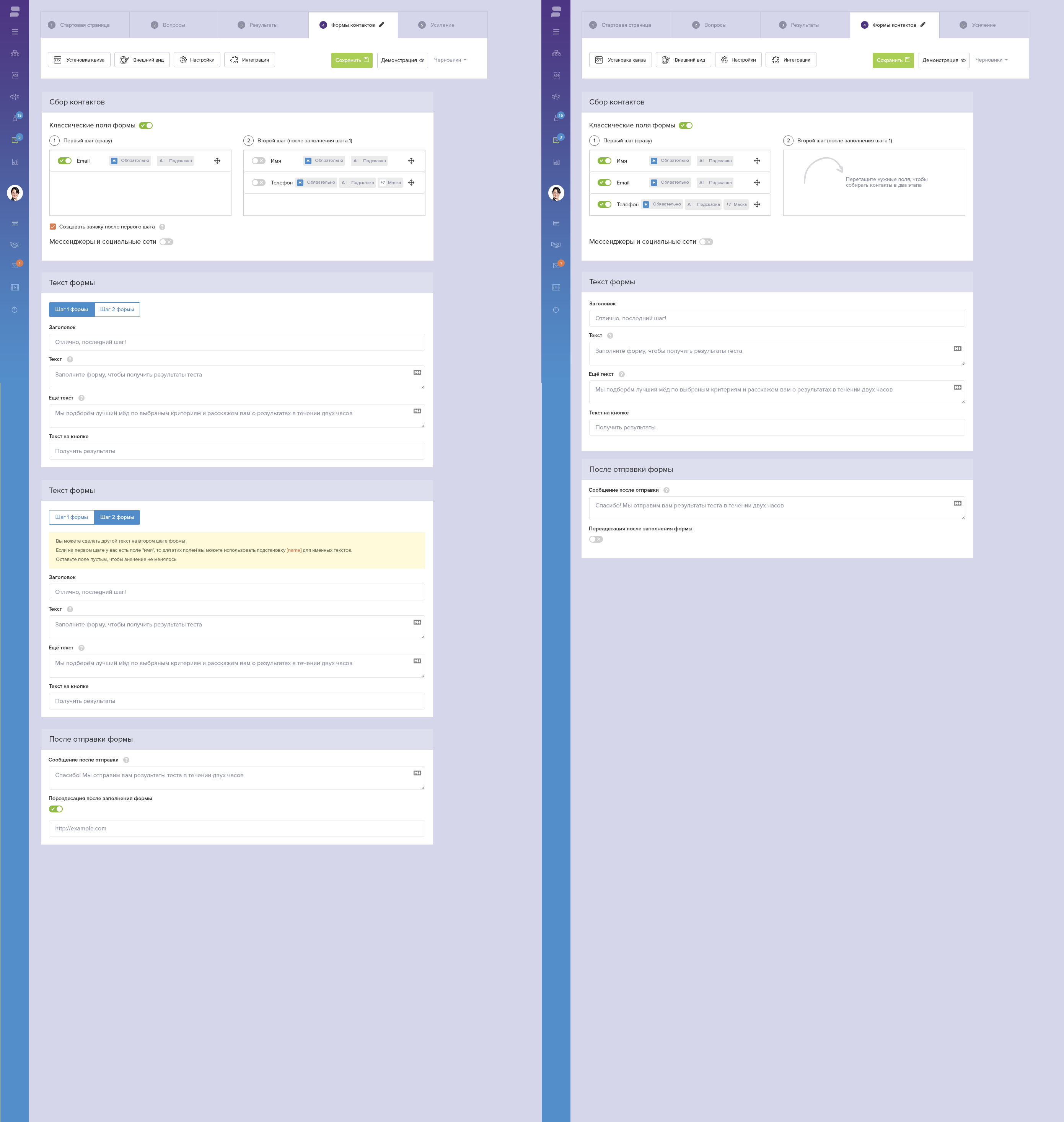 - и внимание, функция создания квизов внутри личного кабинета (в процессе тестирования, покупателю будет приятный бонус!).