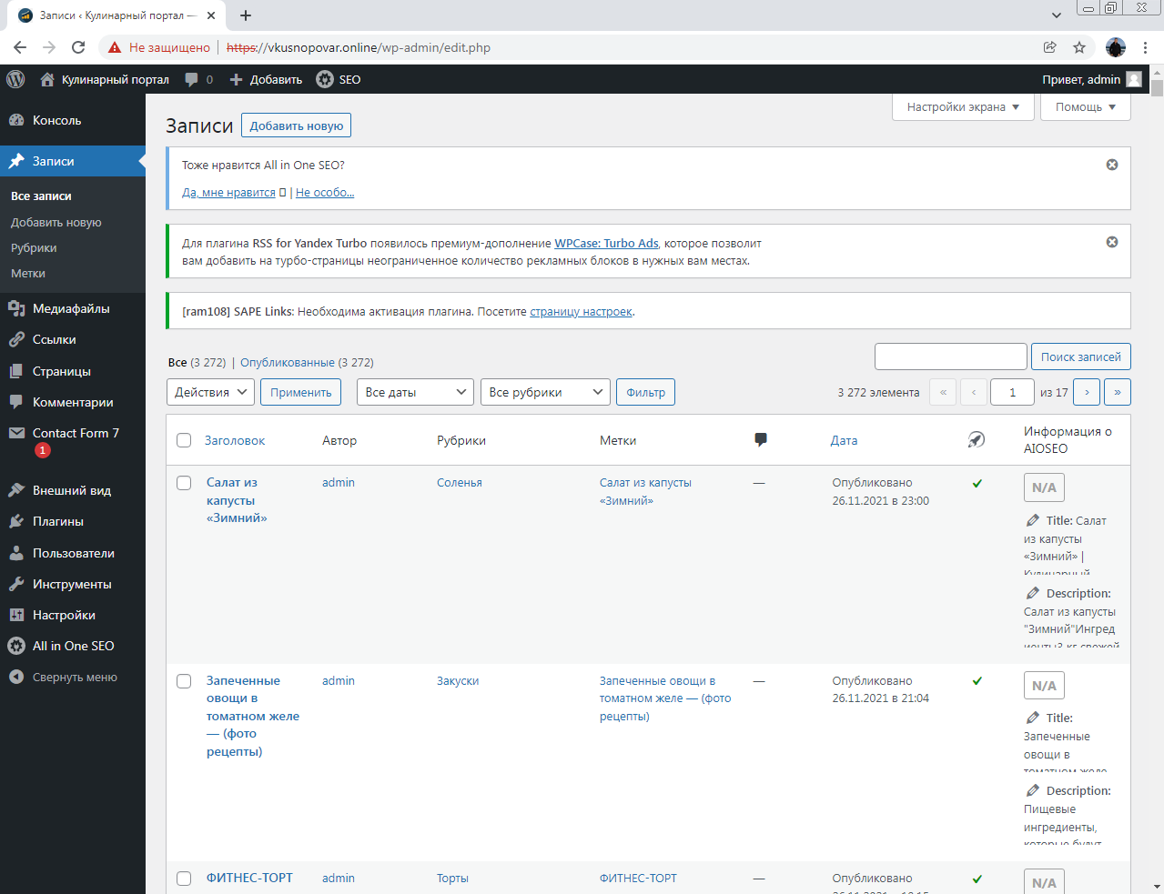 Сайт по кулинарии. На сайте собраны самые лучшие рецепты разнообразных блюд. Рецепты собирались очень долго и упорно. На сайте порядка 3200 рецептов. Первые блюда, вторые блюда, салаты и прочие рецепты. Сайт имеет 12 рубрик. В общем по статьям была проделана огромная работа. У сайта красивый проработанный дизайн. Долго продумывался. Сайт работает на популярном движке Wordpress. Сайт стоит на лучшем по моему мнению хостинге. Собственная удобная панель. Сайт имеет ssl сертификат и работает по https. Домен переоформлю в онлайн режиме. Безбумажное переоформление. Сайт имеет посещаемость от 1000 посетителей в сутки. Посещаемость постепенно растет. На сайте установлена Гугл Аналитика, поэтому можно провести глубокий анализ посещаемости. Что бы ознакомиться с Гугл Аналитикой пишите в личные сообщения. Трафик на сайте из поисковых систем. Сайт имеет неплохой доход. Сайт подключен к компании admitad.com. Доход за последние два месяца в сумме с admitad составил 38750 рублей. Доход пассивный. В общем сайт отличное решение для монетизации. Сайт отлично подойдет под любые биржи и рекламные сети. Возможен торг. По всем вопросам пишите в личные сообщения