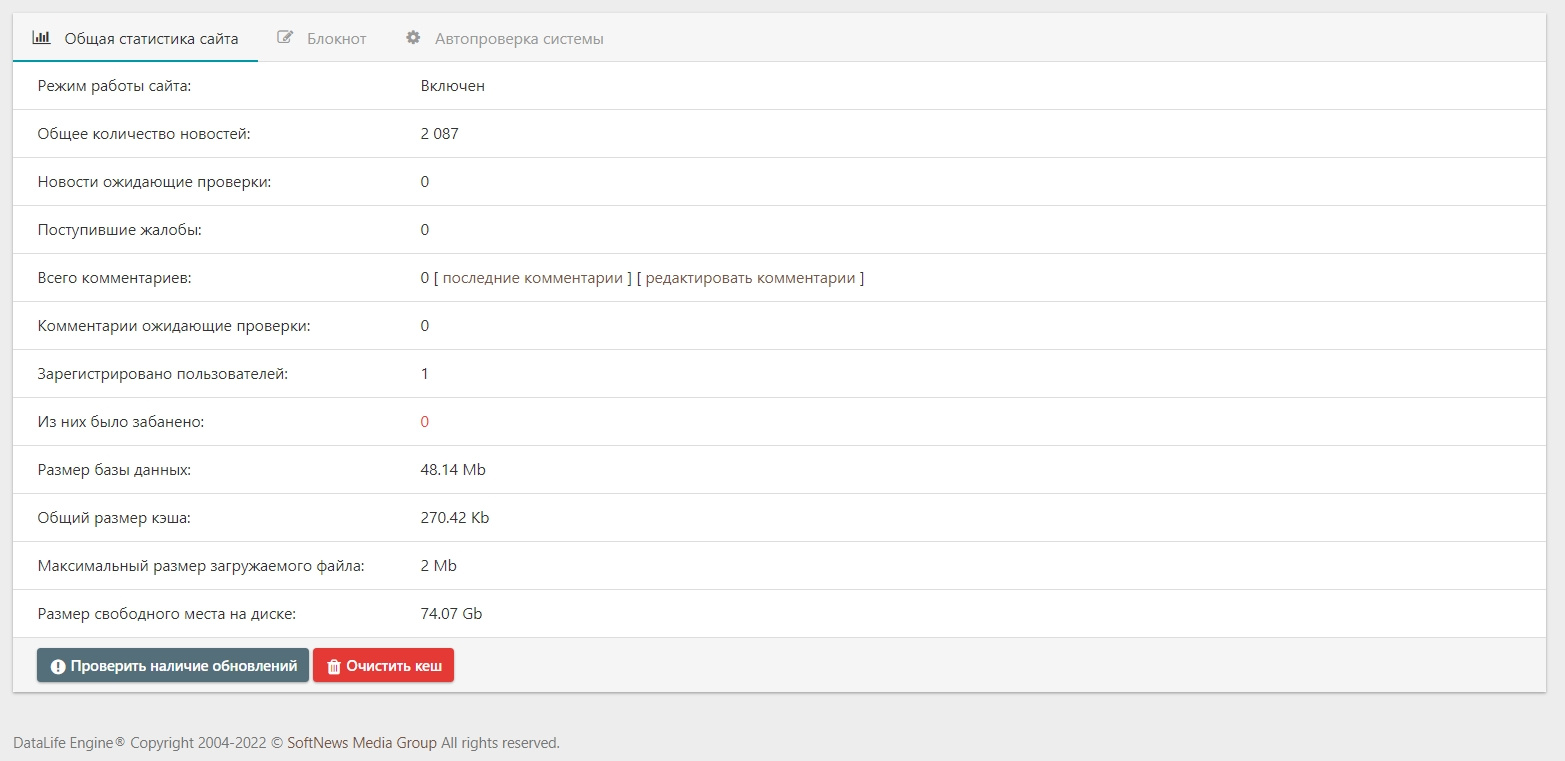 Дополнительная информация:Новости на сайт добавляются, администратором и пользователями сайта. Новости пользователей проходят ручную модерацию, но и есть возможность для включения автоматического режима без модерации.