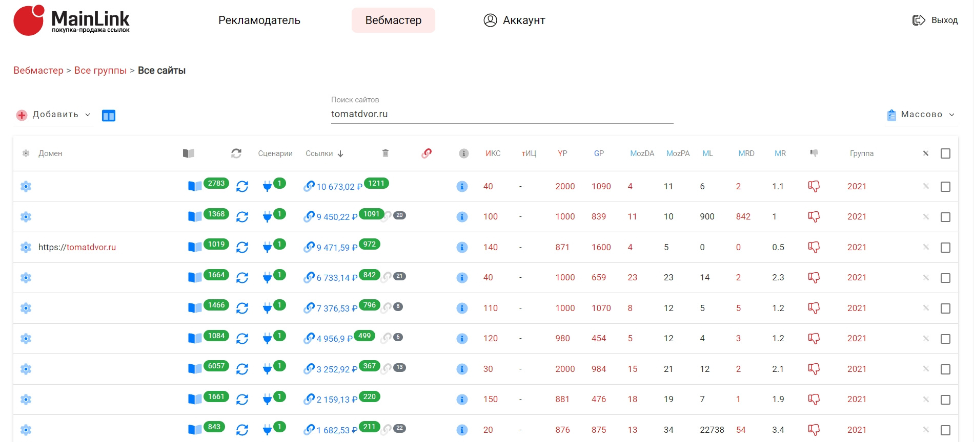 Прямые продажи ссылок:1 500 ₽ / 15%
