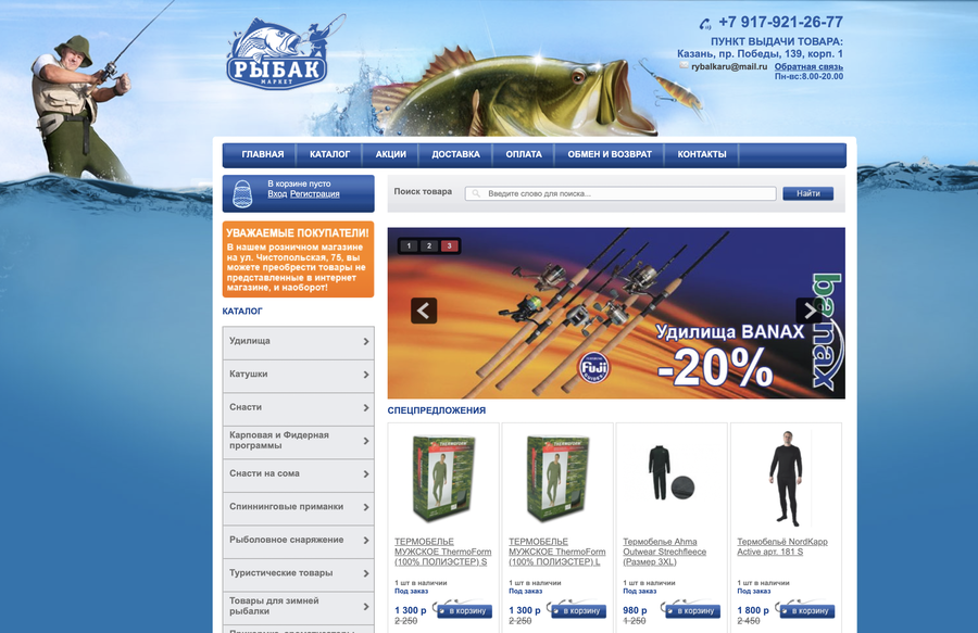 Сайт интернет магазина рыболовных товаров с 2018 года. Заброшен и не используется владельцем.