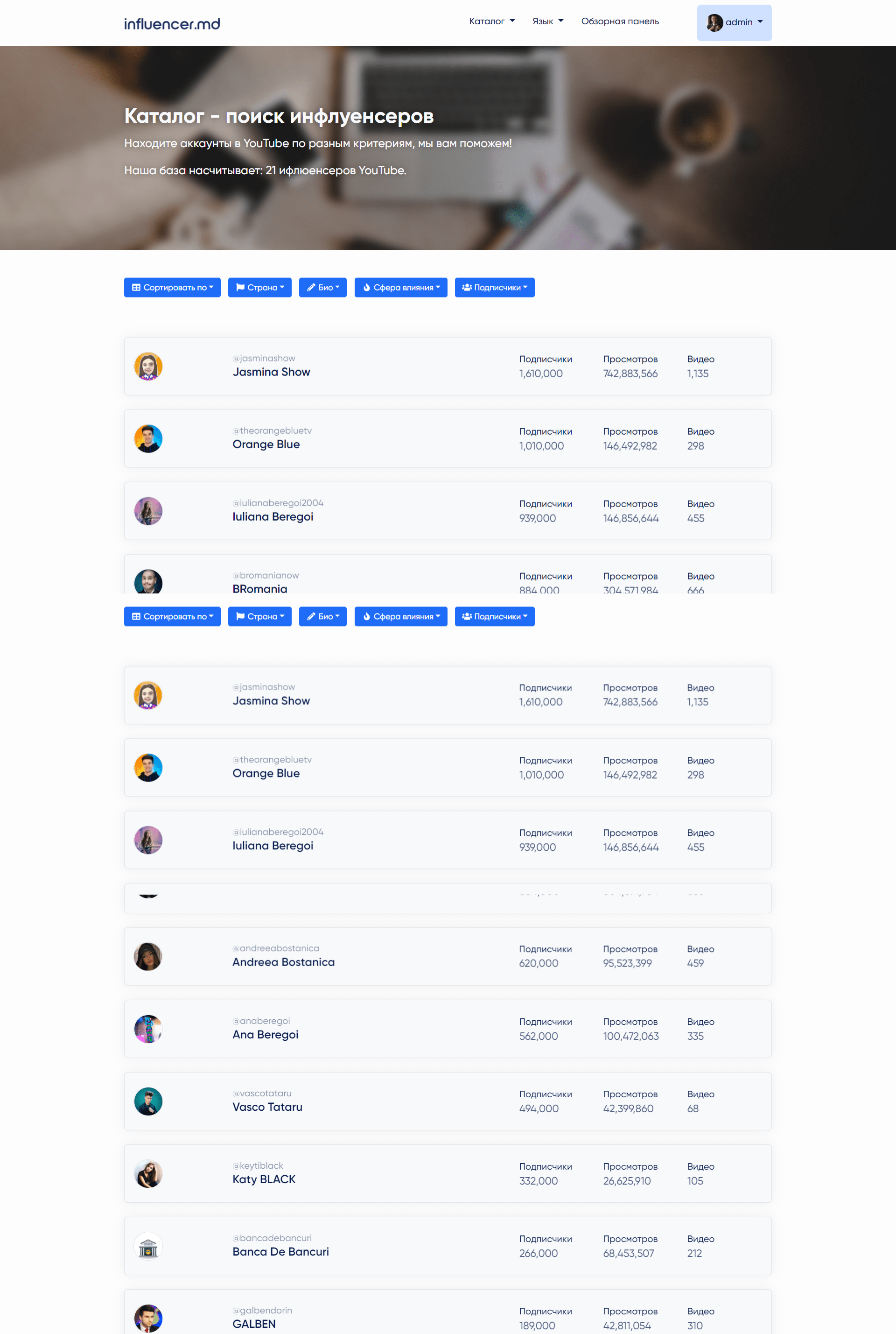 Каталог инфлюенсеров YouTube: https://app.influencer.md/directory-youtube