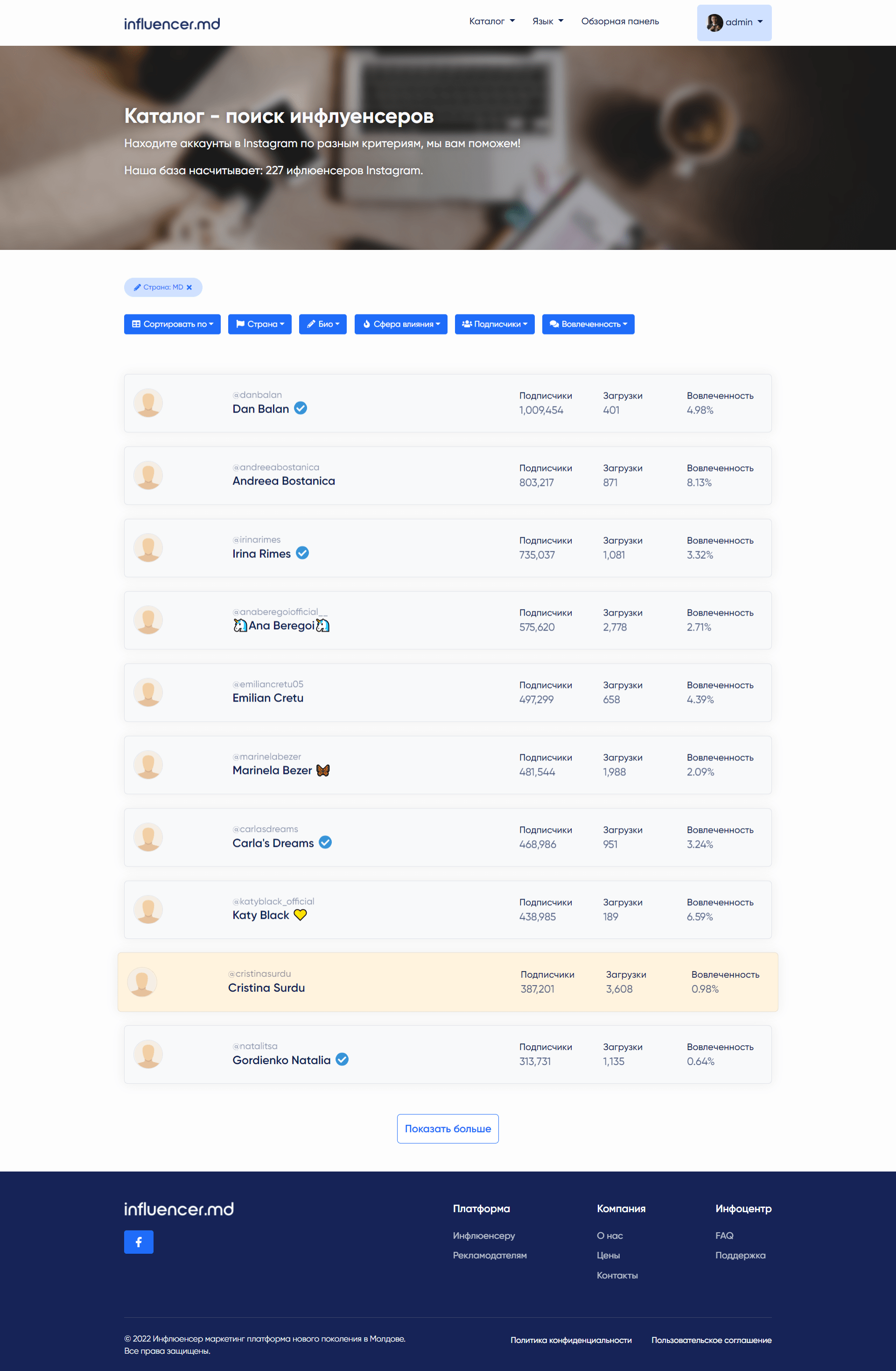 Каталог инфлюенсеров Instagram: https://app.influencer.md/directory-instagram