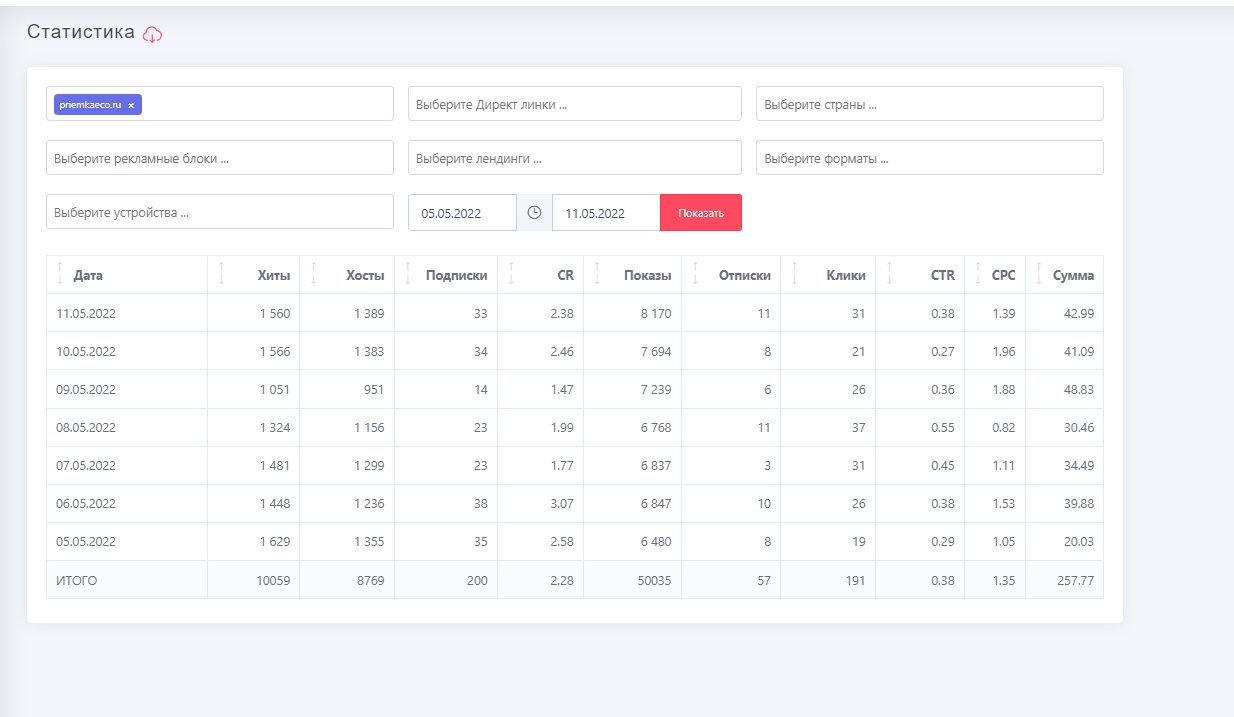 Источники трафика: