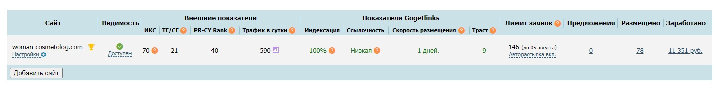 Качественный ссылочный сайт со стабильным доходом. На сайте 650 сео статей.СДЛ. У сайта есть группы в VK (1118 подписчиков) и в Facebook (253 подписчика). Много SEO статей (больше 90 процентов). Периодически клиенты обращаются за консультацией по косметологии через сайт