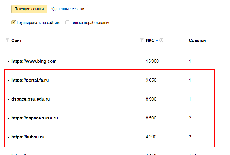 1. Есть естественные жирные ссылки с государственных ВУЗов РФ (скриншот 2), в основном из pdf-файлов.
