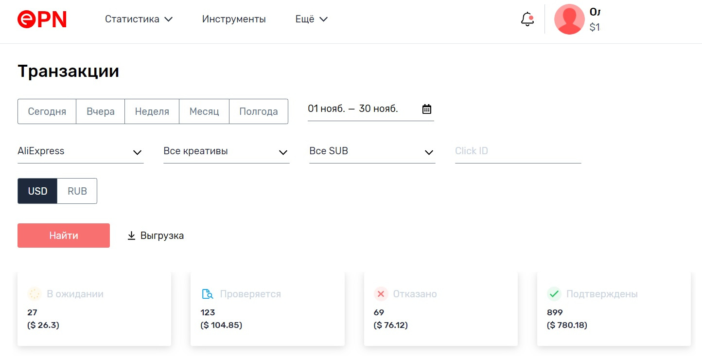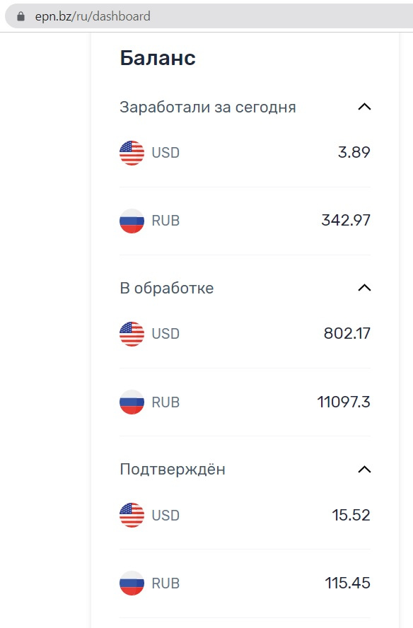 БОНУС! Вместе с сайтом передаю свой аккаунт на EPN с 802$ и 11000 рублей, которые ожидают подтверждения. То есть вы можете еще заработать дополнительные 800$ и 11000 рублей. Более подробно про доход читайте в разделе Доход.
