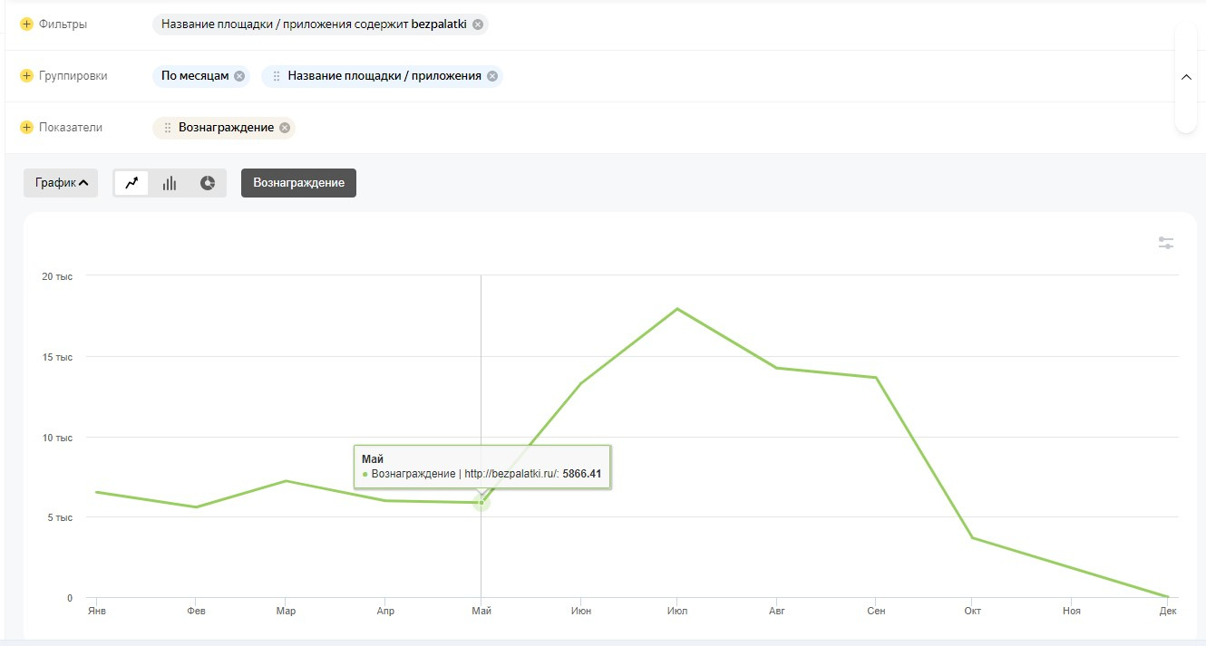 Средний доход за последний год составил 12500 руб в месяц по всем системам монетизации, это с учетом провала февраля-марта.
