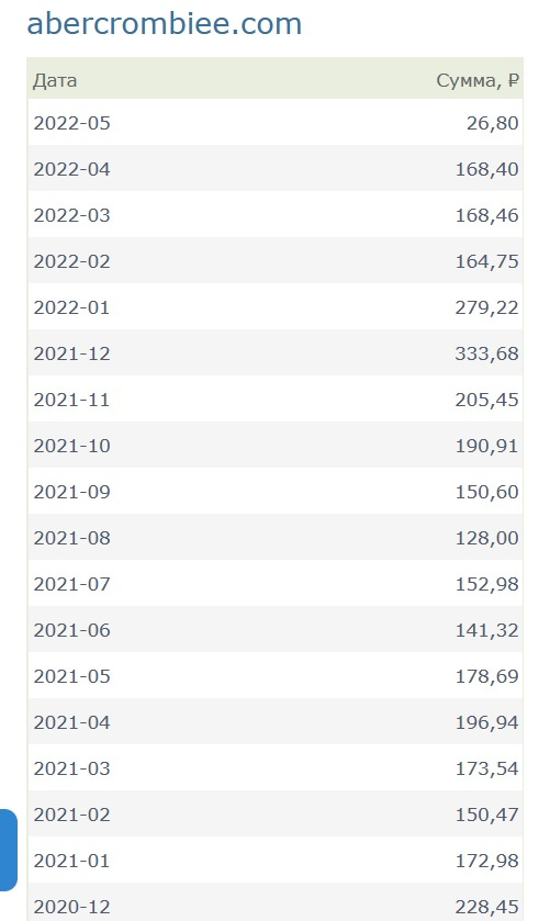 сайт abercrombiee.com , регистратор qq.domains, продление 14 июня, доход 5,7 рублей/сутки