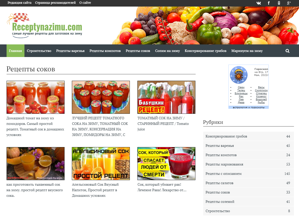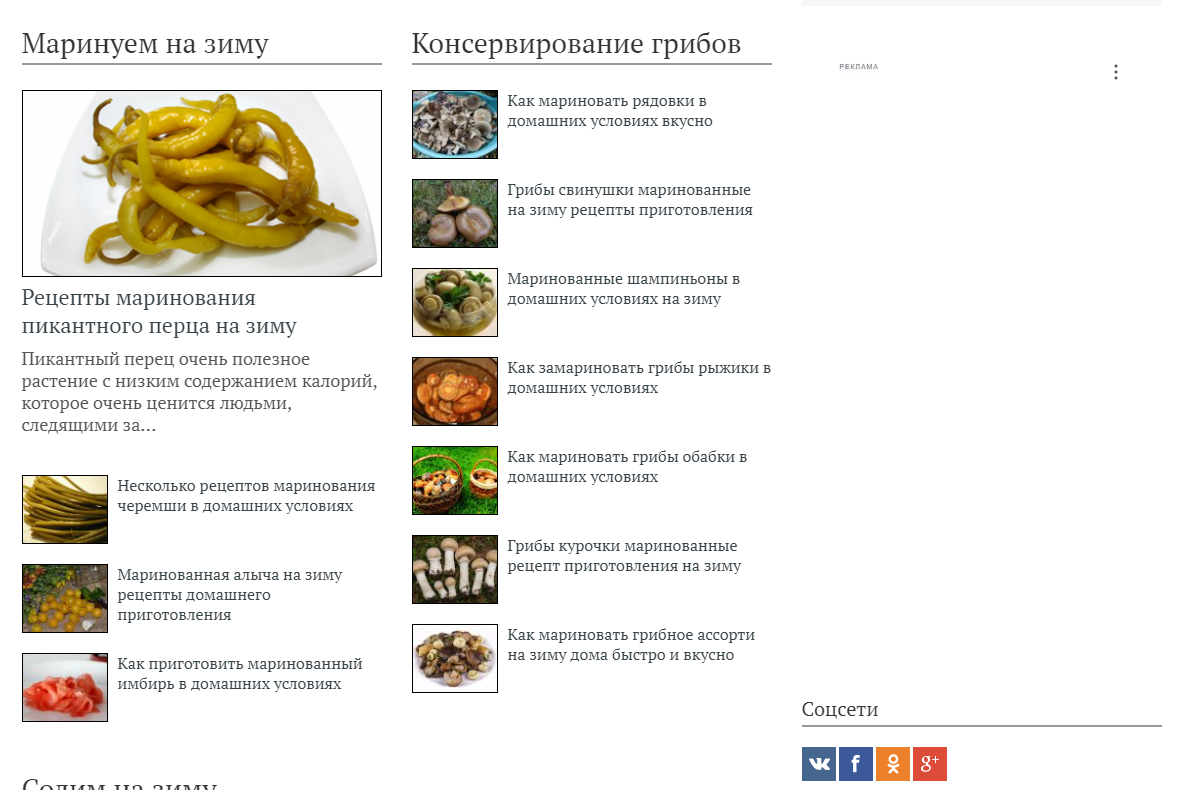 Старый, трастовый сайт с репутацией и пузомерками. Принят во все рекламные системы отечественные и зарубежные, никаких санкций нет и быть не может. Трафик чистый поиск. СДЛ. Сайт с рецептами. Рецепты на зиму. Рецепты засолок грибов, рецепты салатов. Посещаемость 500+ уникальный посетителей в сутки. В сезон конец лета - осень - зима посещаемость 800-1000 в сутки. Если сайтом заняться и начать развивать тематику, то возможно вернуть старые показатели в 5000 в сутки и выше. Так же возможно применять различные способы монетизации. В настоящее время сайтом некогда заниматься, поэтому продаем как есть. При покупке, переоформление домена оплачивает покупатель. Все комиссии по сделки с Телдери так же оплачивает покупатель сайта.