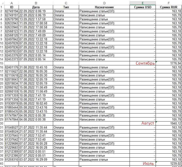Доход за май 8984 р., июнь 10148 р., июль 7543 р., август 7109 р., сентябрь 5198 р., октябрь 12777 р., ноябрь 10088 р., декабрь 9595 р., январь(2023 г.) 6814 руб., февраль(2023 г.) 8170 р., март(2023) 11438 р. апрель(2023) 9686 р., май(2023) 10721 р., июнь(2023) 5009 р., июль(2023) 5552 р., август(2023) 6237 р., сентябрь(2023) 5720 р., октябрь(2023) 4371 р., ноябрь(2023) 4933 р. с GGL, Miralinks, Rotapost, Pr.Sape, Forumok. Также рекламодатели пишут запросы на размещение прямых ссылок.
