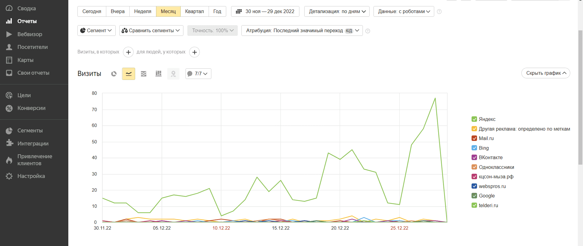 Дополнительная информация по трафику:Телдери не совсем точно отображает посещаемость с Яндекса. В некоторые дни недели посещаемость с Яндекса составляет около 40 хостов (смотрите прилагаемые скрины). Имеется тенденция к росту трафика