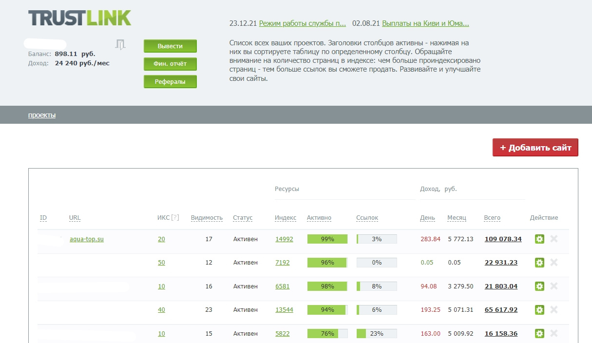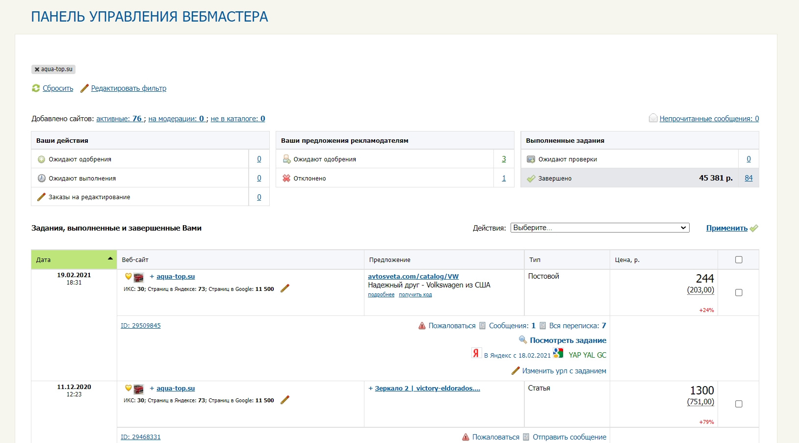 Сайт работает на биржах которые приносят стабильный доход, так же есть прямые заказчики на публикацию статей, постов, ссылок, баннеров на сайте. Данные люди связываются на прямую с администрацией сайта..