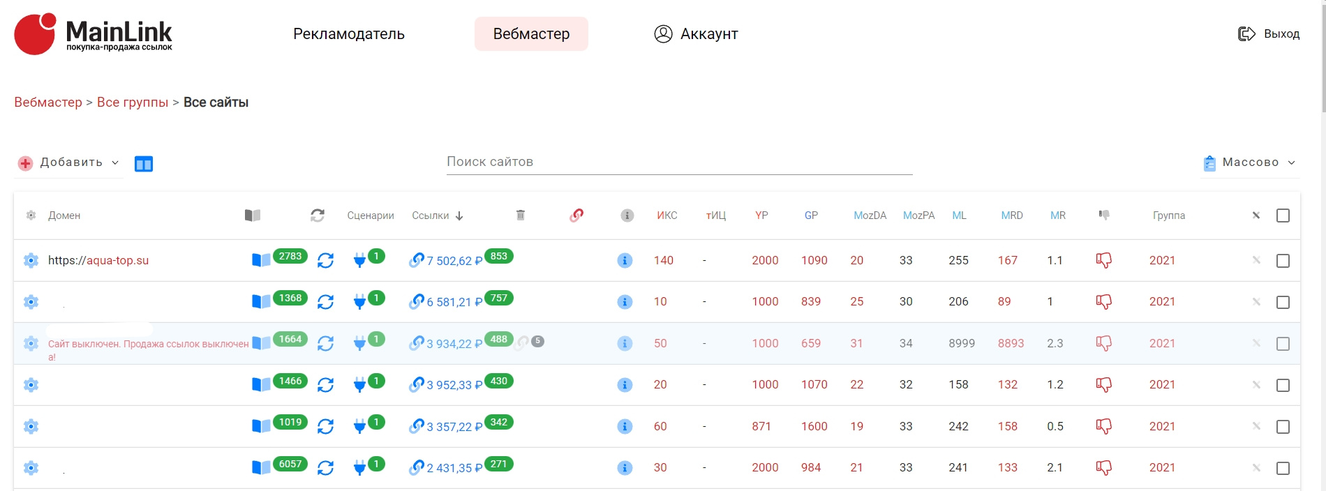 Прямые продажи ссылок:2 500 ₽ / 26%