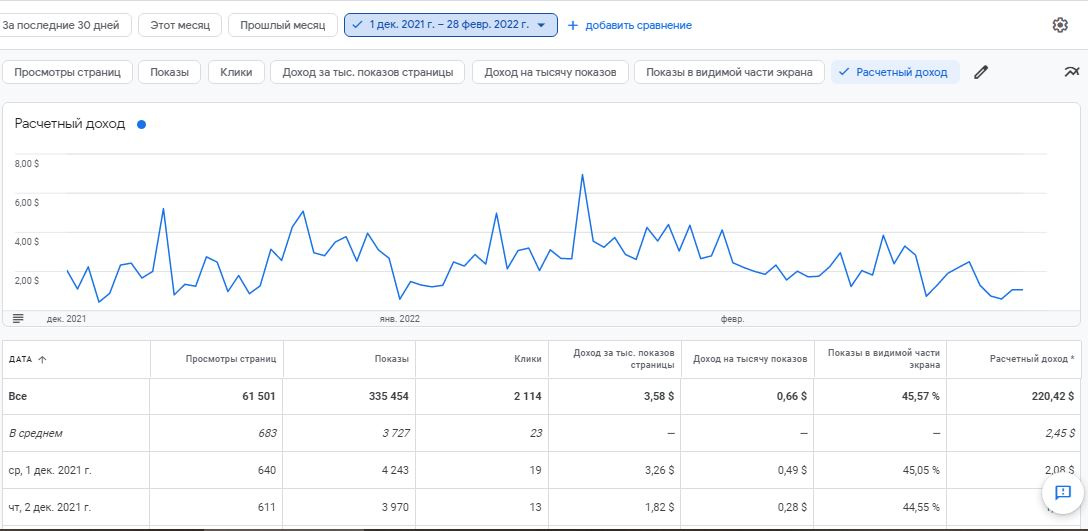 Адсенс до марта 220,42 долл за 90 дн