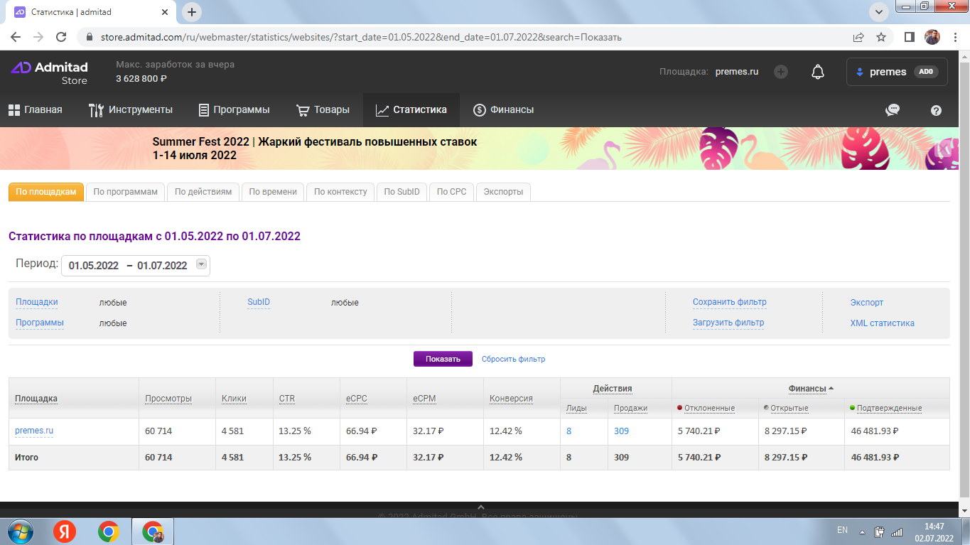 Монетизируется сайт в популярной в России и за рубежом СРА сети admitad.com. Данная СРА сеть работает очень давно. На протяжении многих лет. У сайта, средний доход в месяц составляет 23240 рублей. Стабильный и пассивный доход.