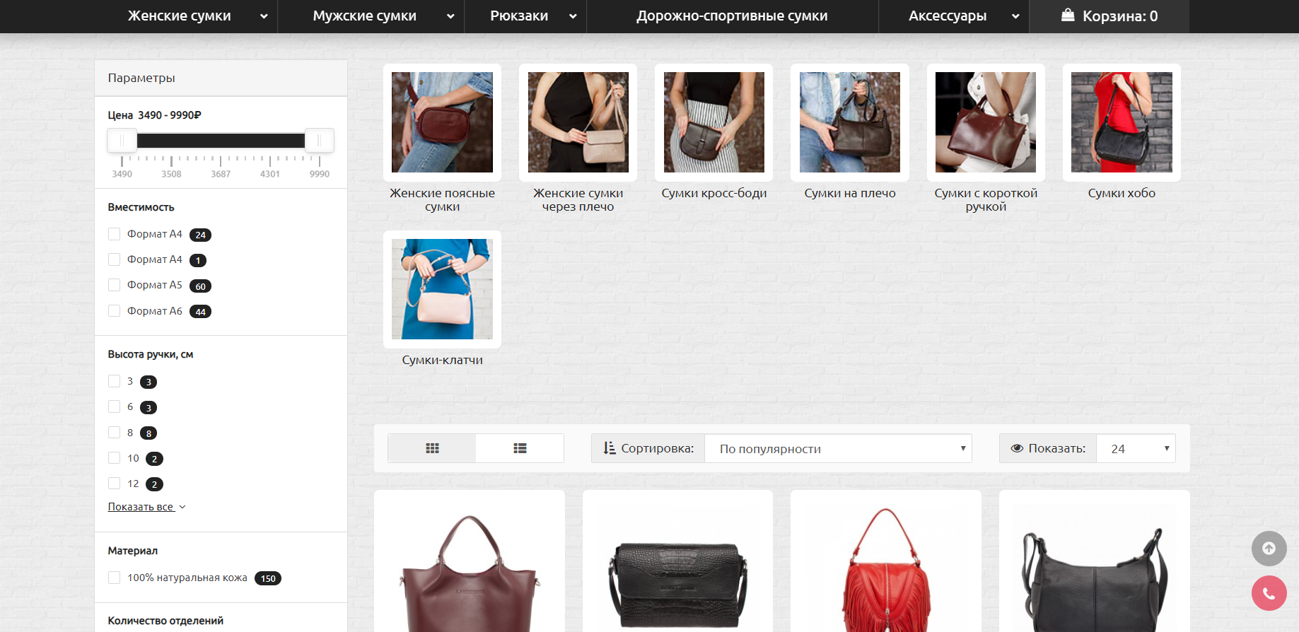 Продается интернет-магазин женских и мужских сумок и рюкзаков.