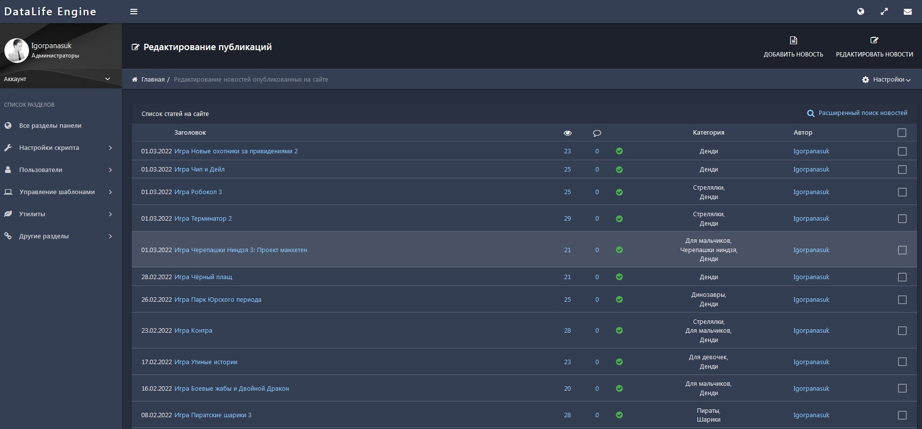 CMS сайта - DLE (простая админка, оптимизирована и настроена).