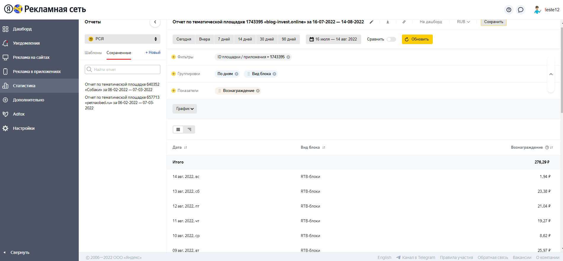 В день сайт приносит 15-20 руб. (500-600 руб. будет в месяц с РСЯ). Скрин тоже могу прислать.