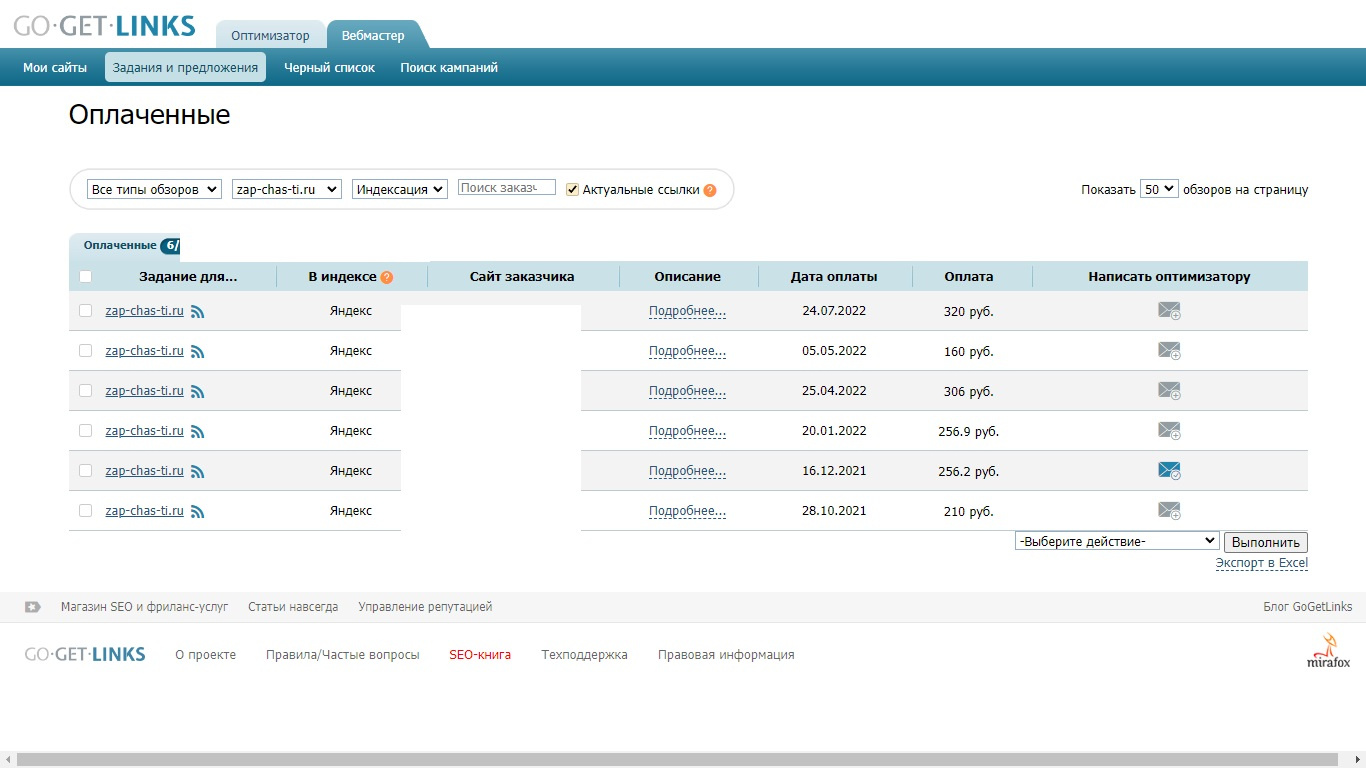 Сайт принят в GGL и Miralinks, ссылок продано всего несколько штук (см. скриншот: GGL.jpg и Miralinks.jpg).