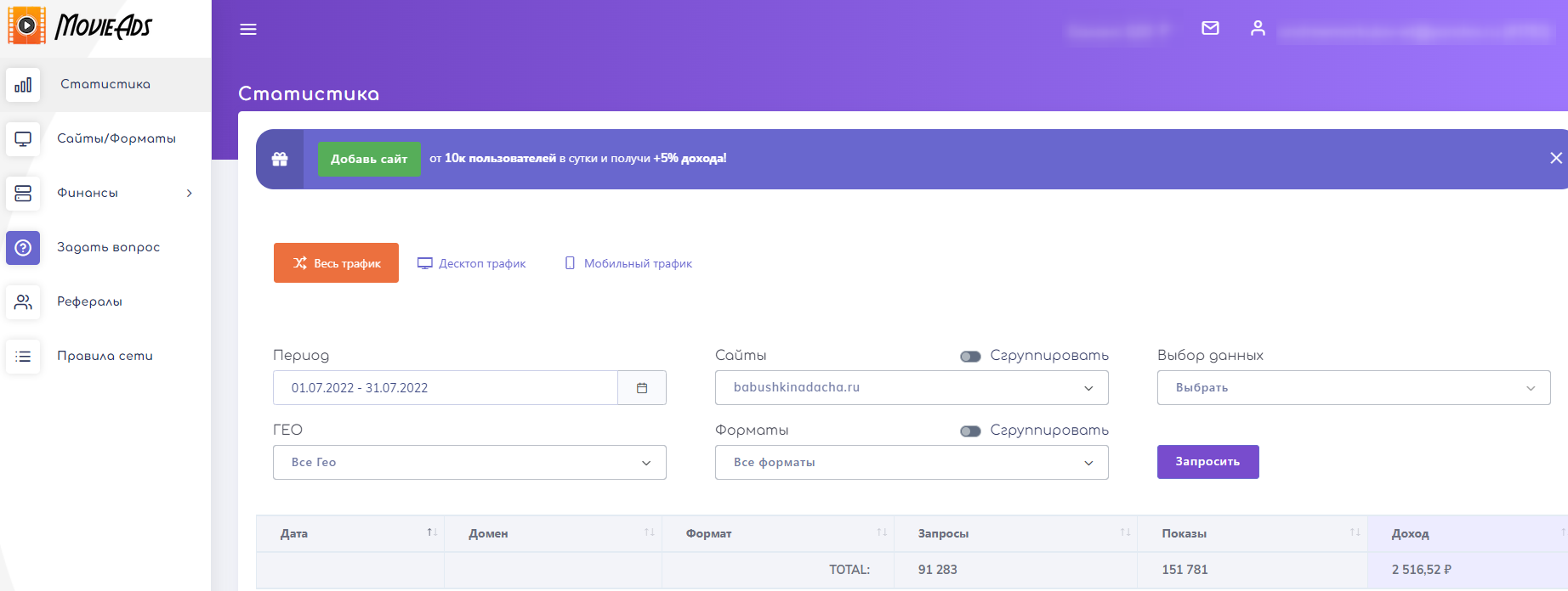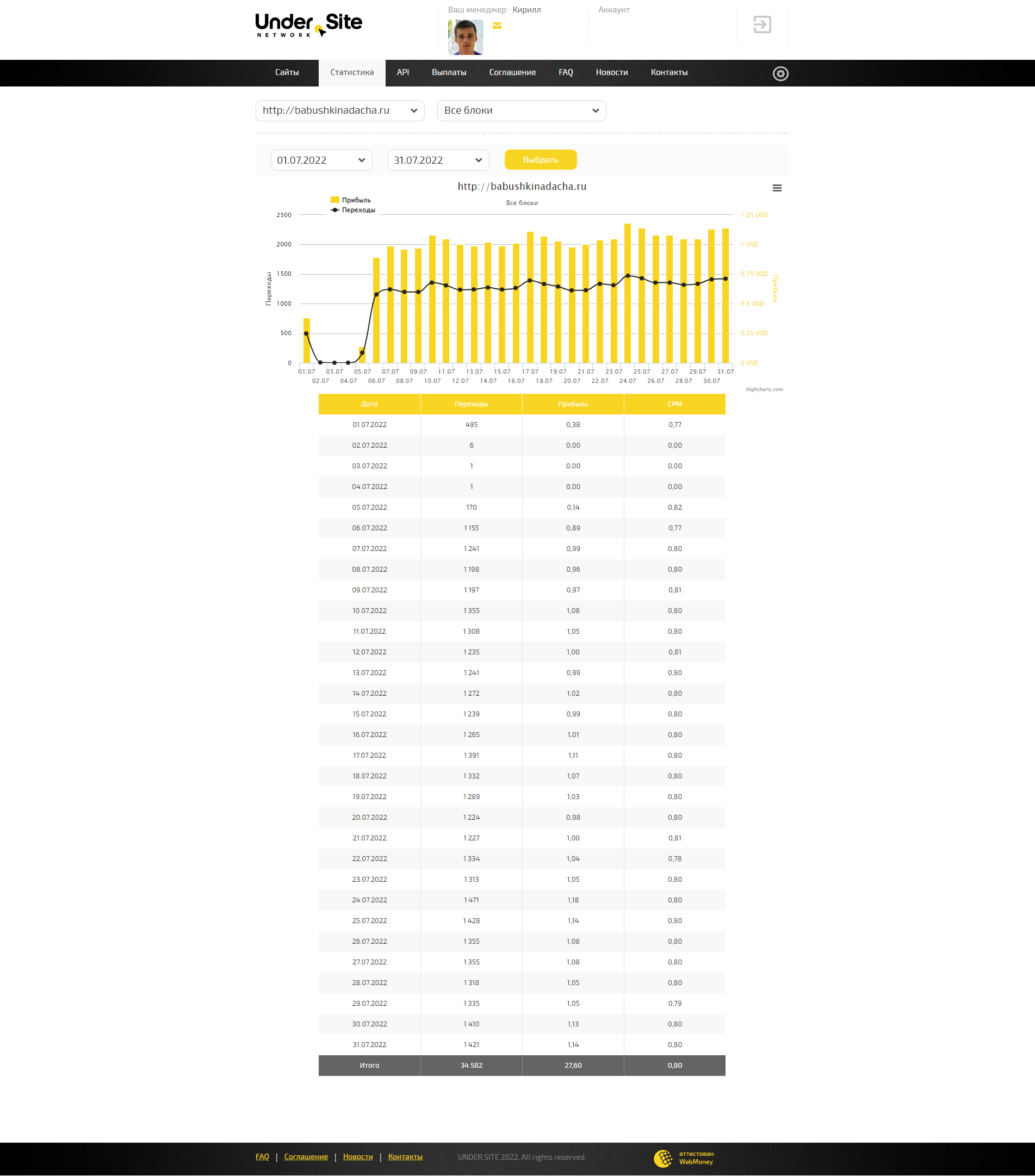 Консервативный доход, с началом событий на Украине Google Adsense перестал работать в РФ и все сайты с трафиком из России практически полностью перестали получать от него доход. На текущий момент уровень доходов был восстановлен в полном объеме. Однако по прогнозам нашей команды по монетизации его доходы могут превышать 19 копеек, сайт можно разогнать до 25коп.
