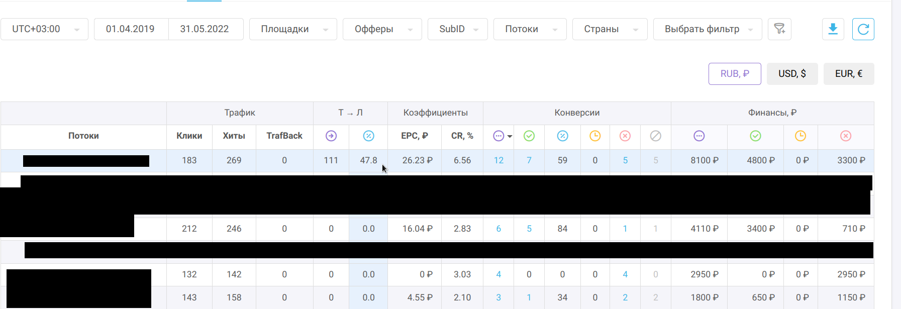 Источники трафика: