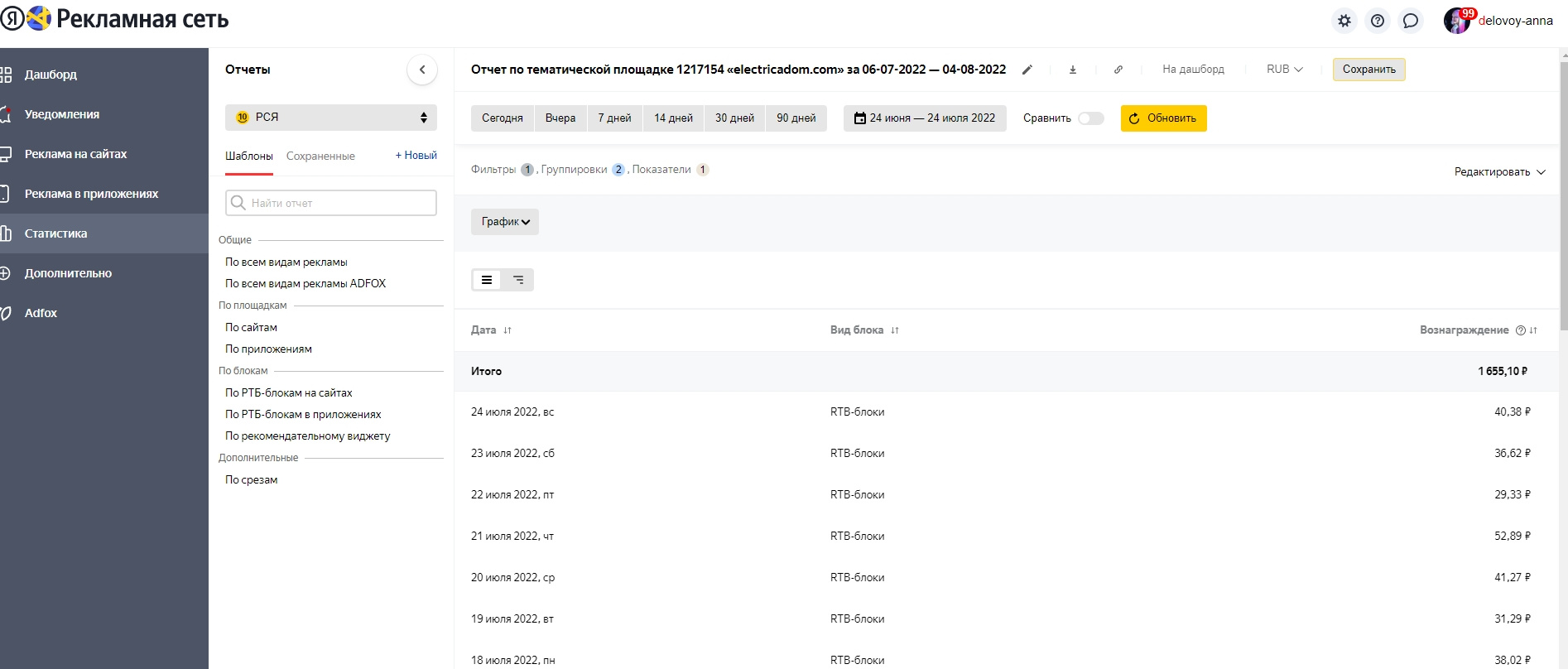 В июне 2022 года сайт заведен в РСЯ, с 4 августа в новом аккаунте РСЯ.
