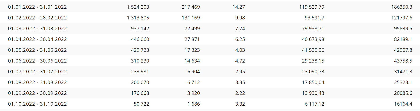 По запросу скину гугл таблицу с выгрузкой доходов за два года.