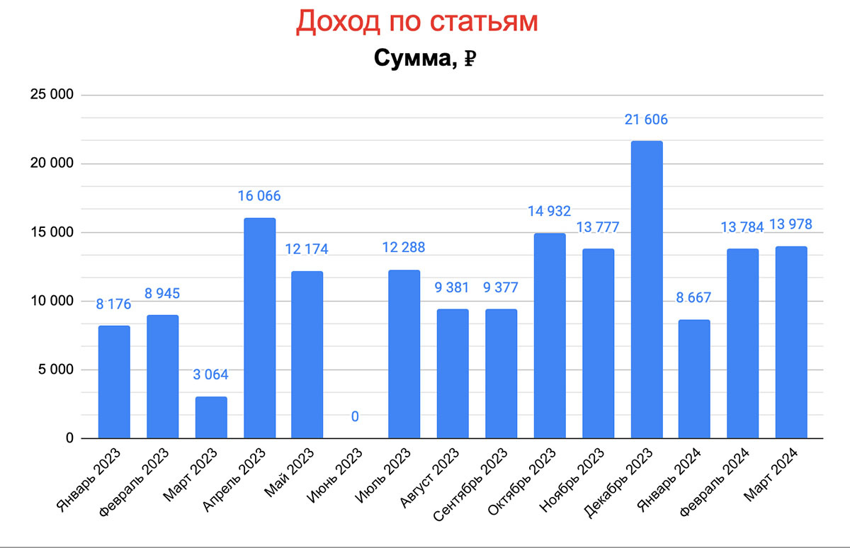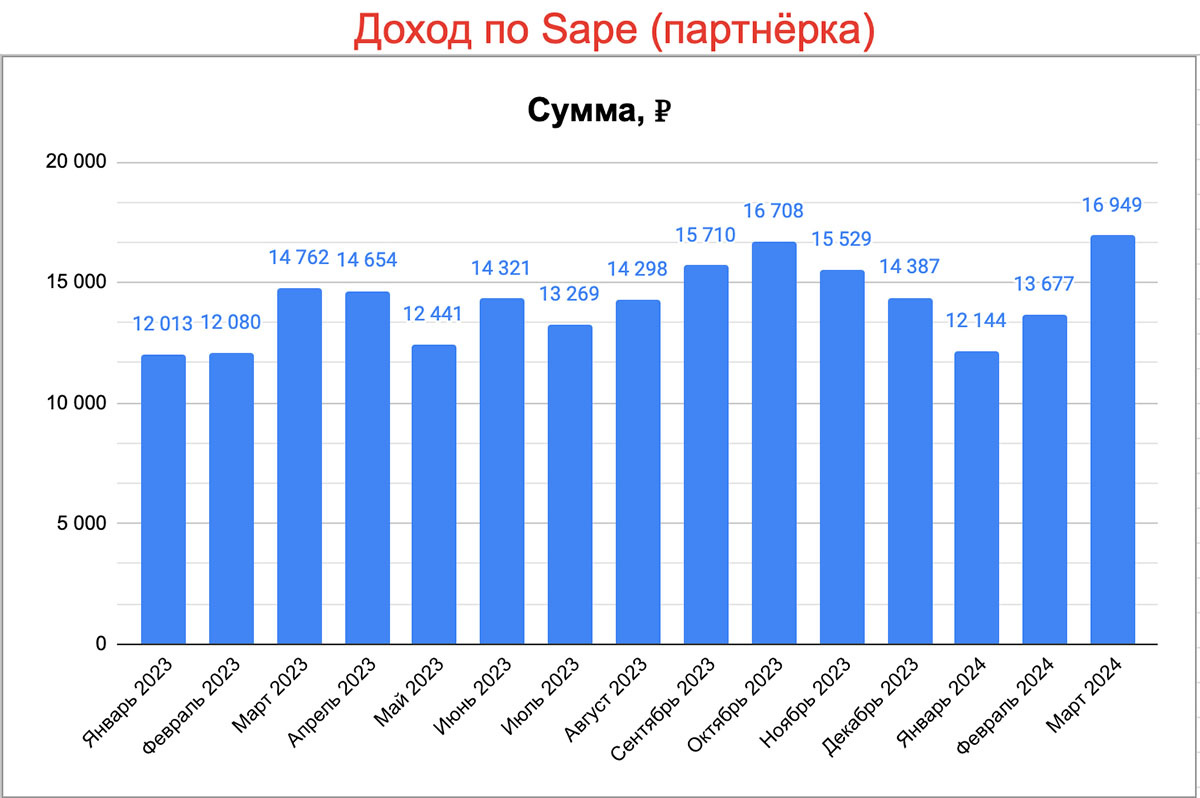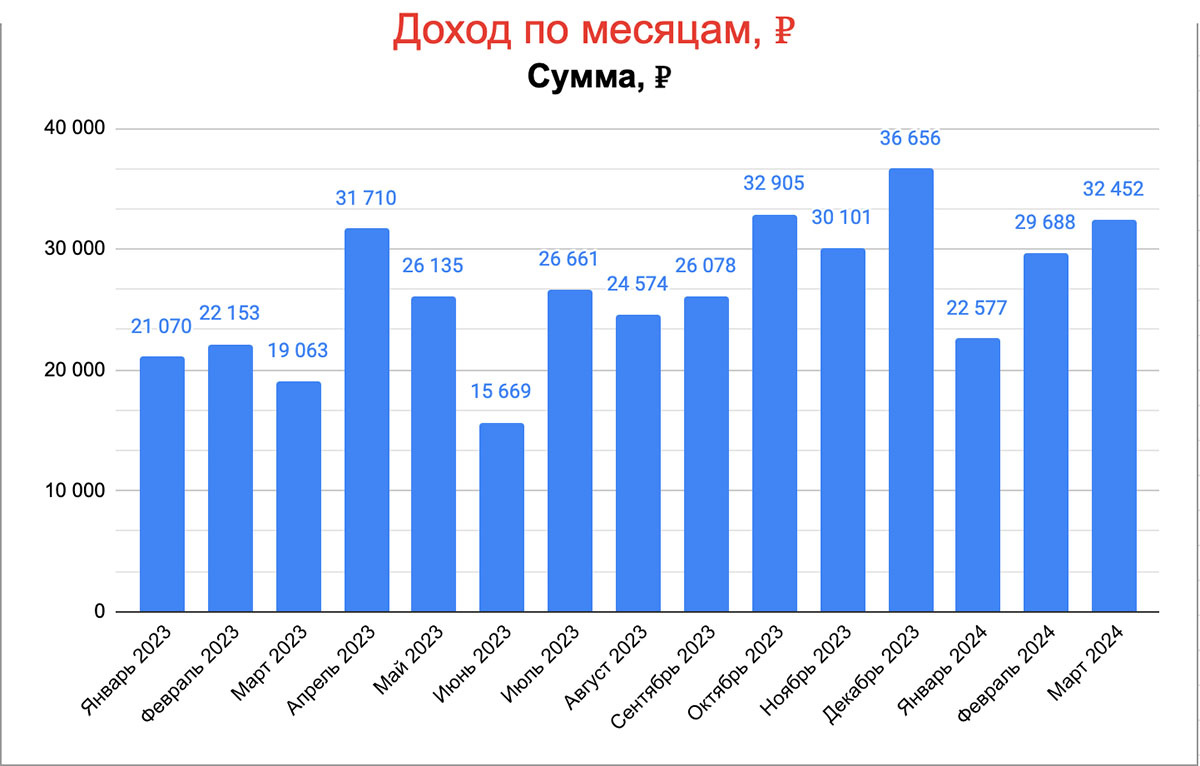 Приносит стабильный ежемесячный доход на протяжении всех 15-ти лет c разных источников.