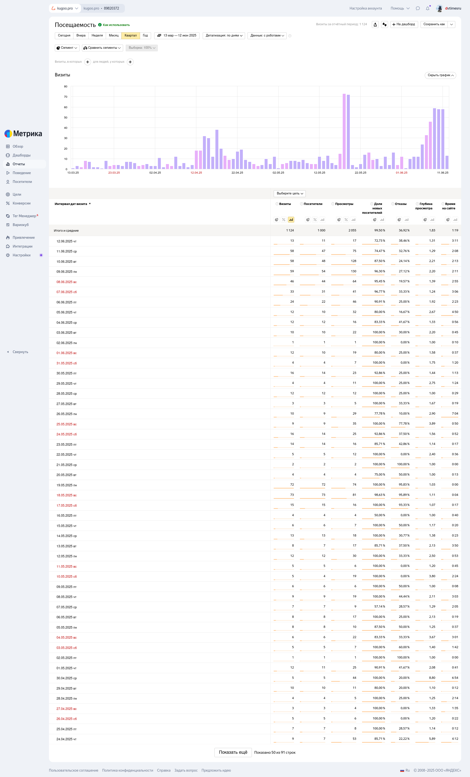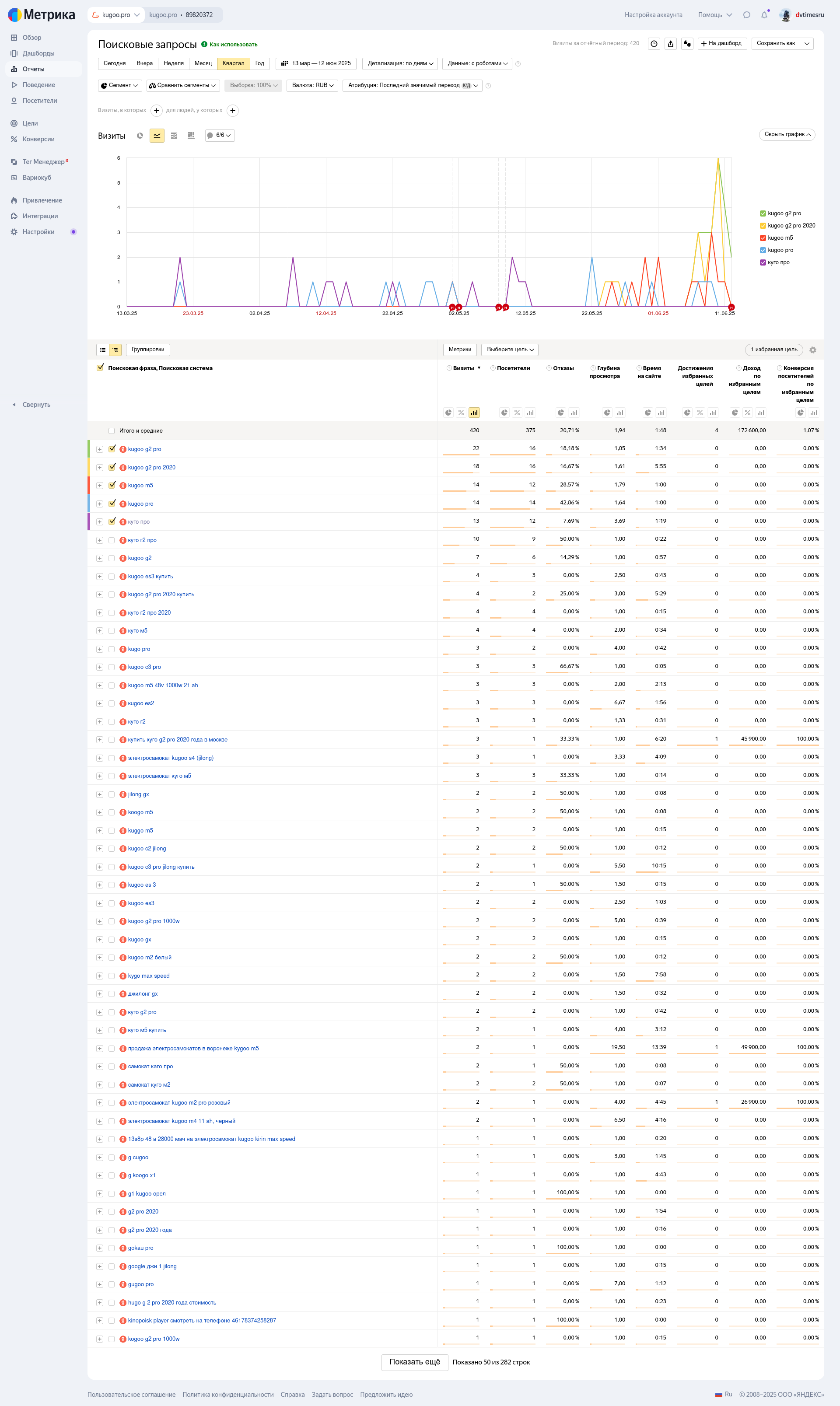 Небольшая органическая посещаемость, сайт никак не раскручивался. Первые позиции по запросу "Kugoo pro"