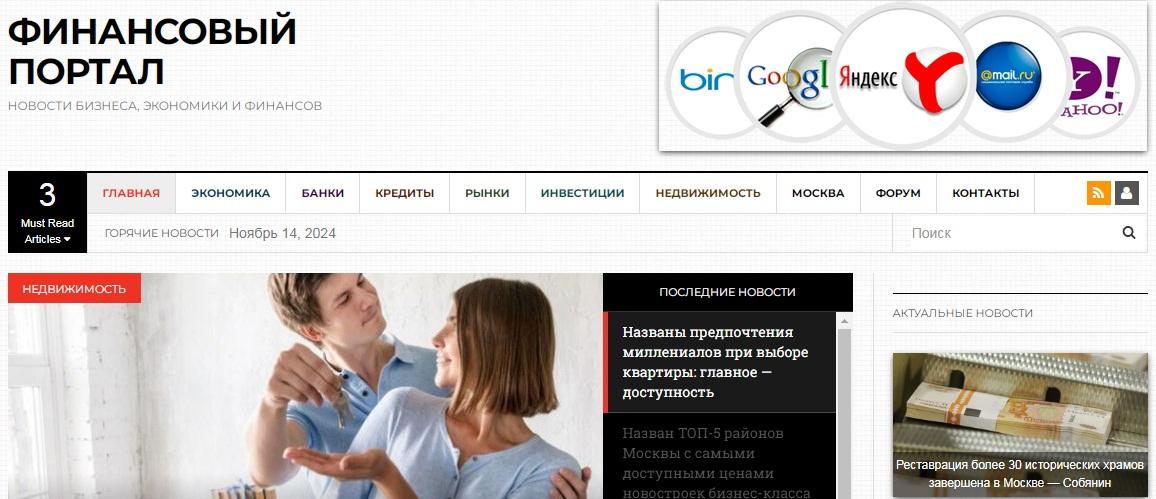 Финансовый портал. Новости бизнеса, экономики, финансов. Сайт продается как есть.